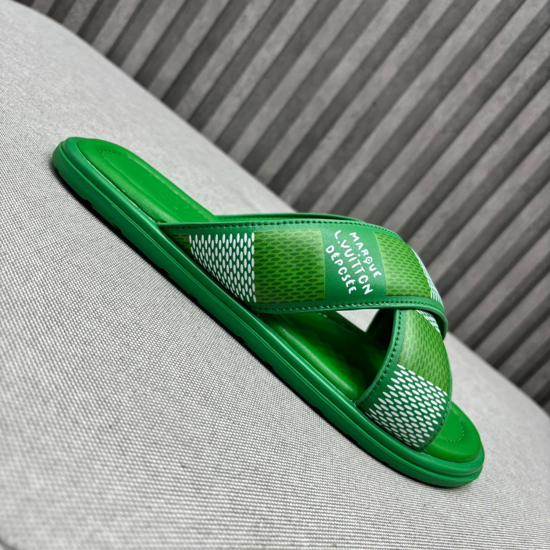 • Premium LV men's slippers, synchronizing with the 2024 early autumn runway collection. The slippers feature a high-quality fabric upper and an original, exclusive comfort sole, ensuring exceptional comfort. These are original factory-followed products.