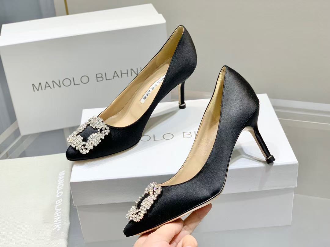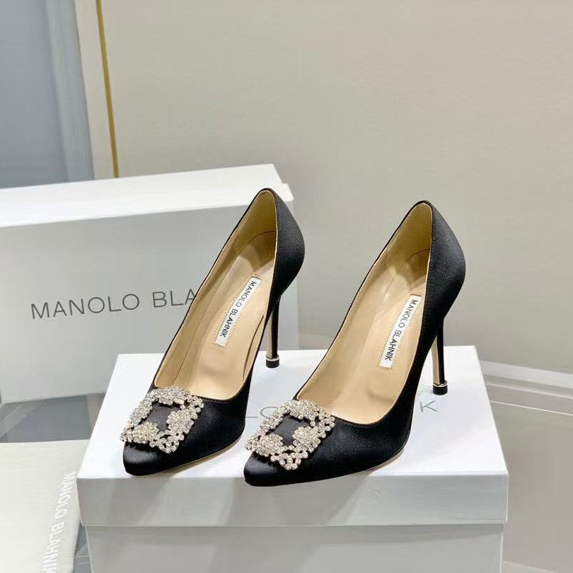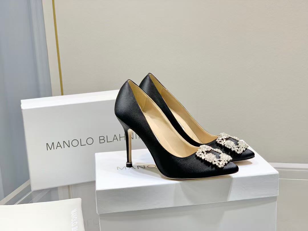 Manolo Diamond Buckle Pumps 10cm black Silk