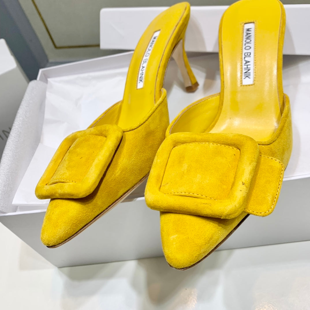 Manolo Mules 7cm Yellow Suede Leather Bottom 451186
