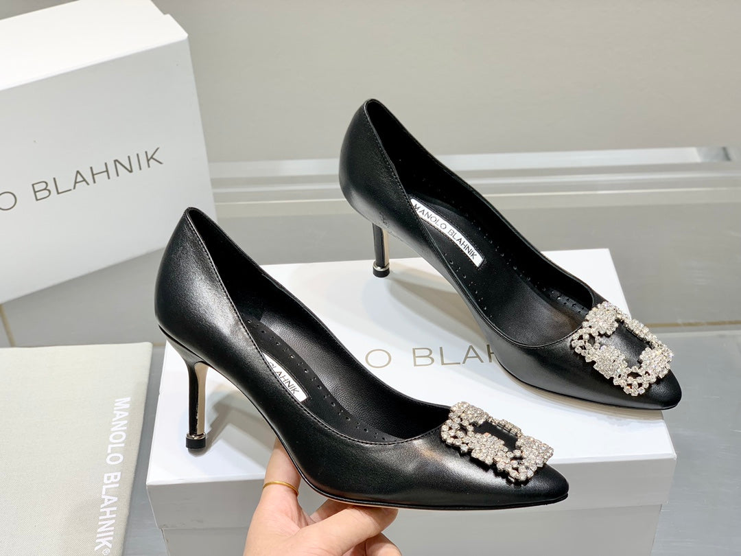 Manolo Snowflake Buckle Pumps Black Cowhide 204508