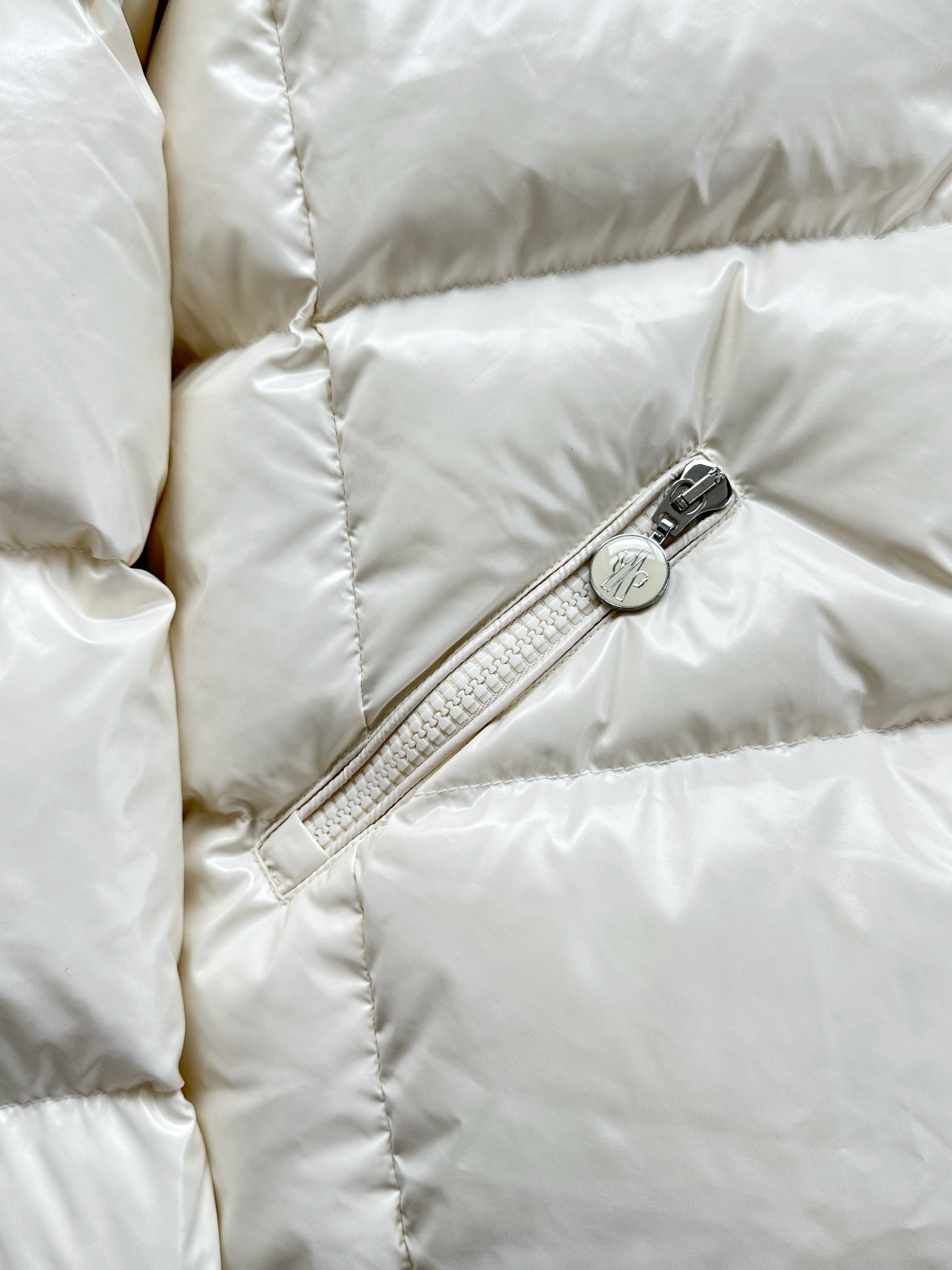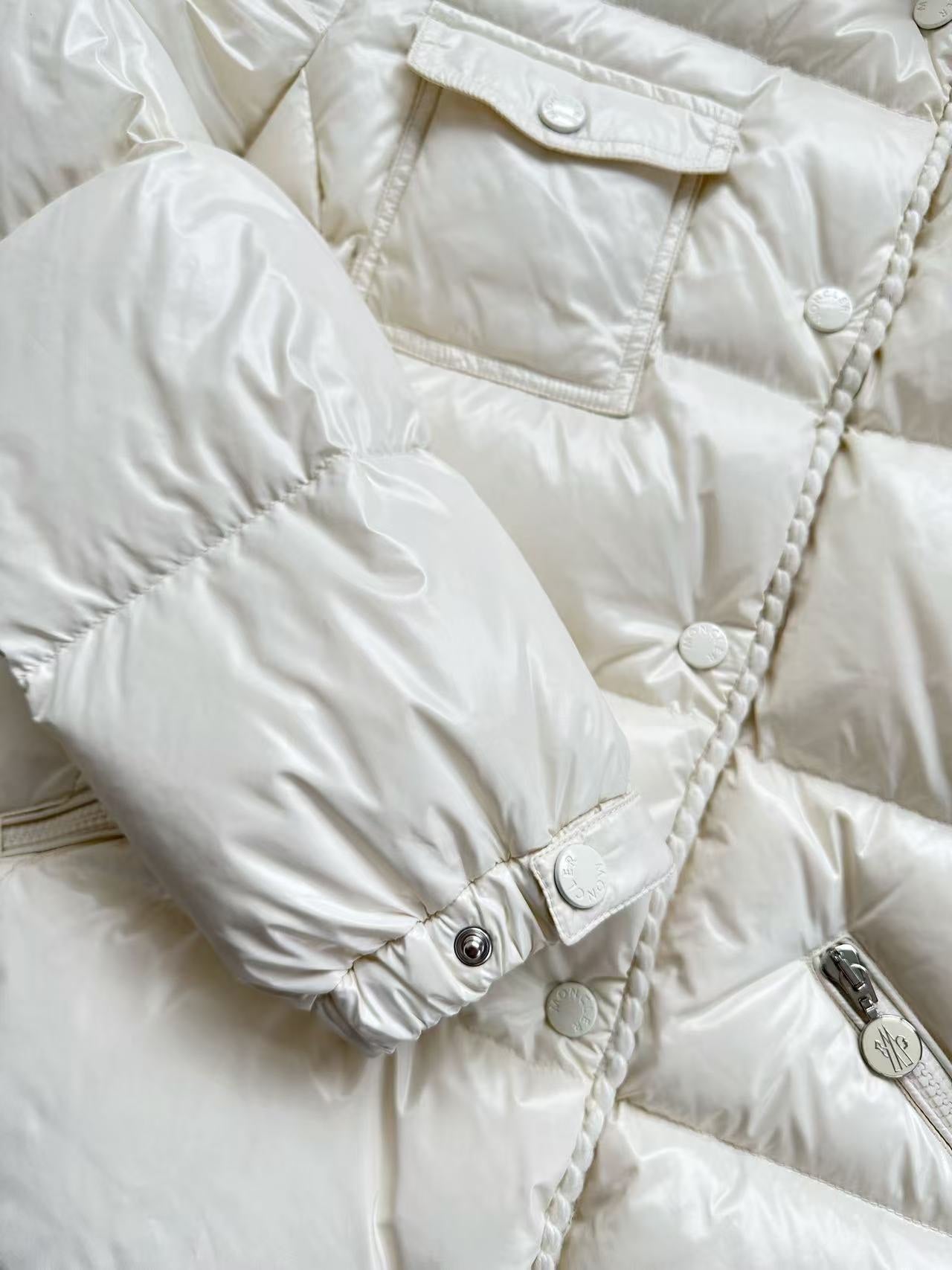 MC 2025 Hooded Down Jacket White Nylon Fabric