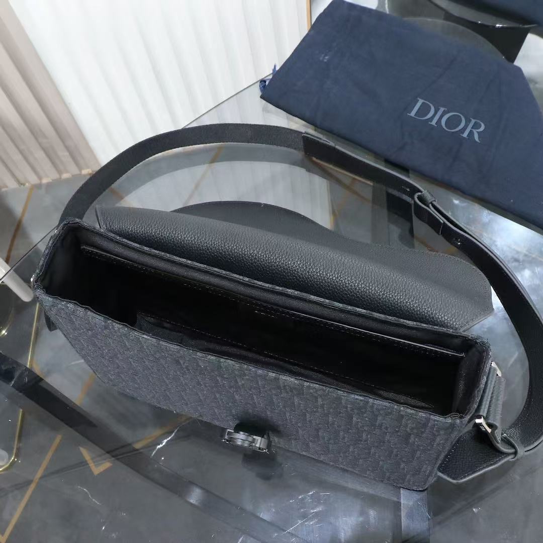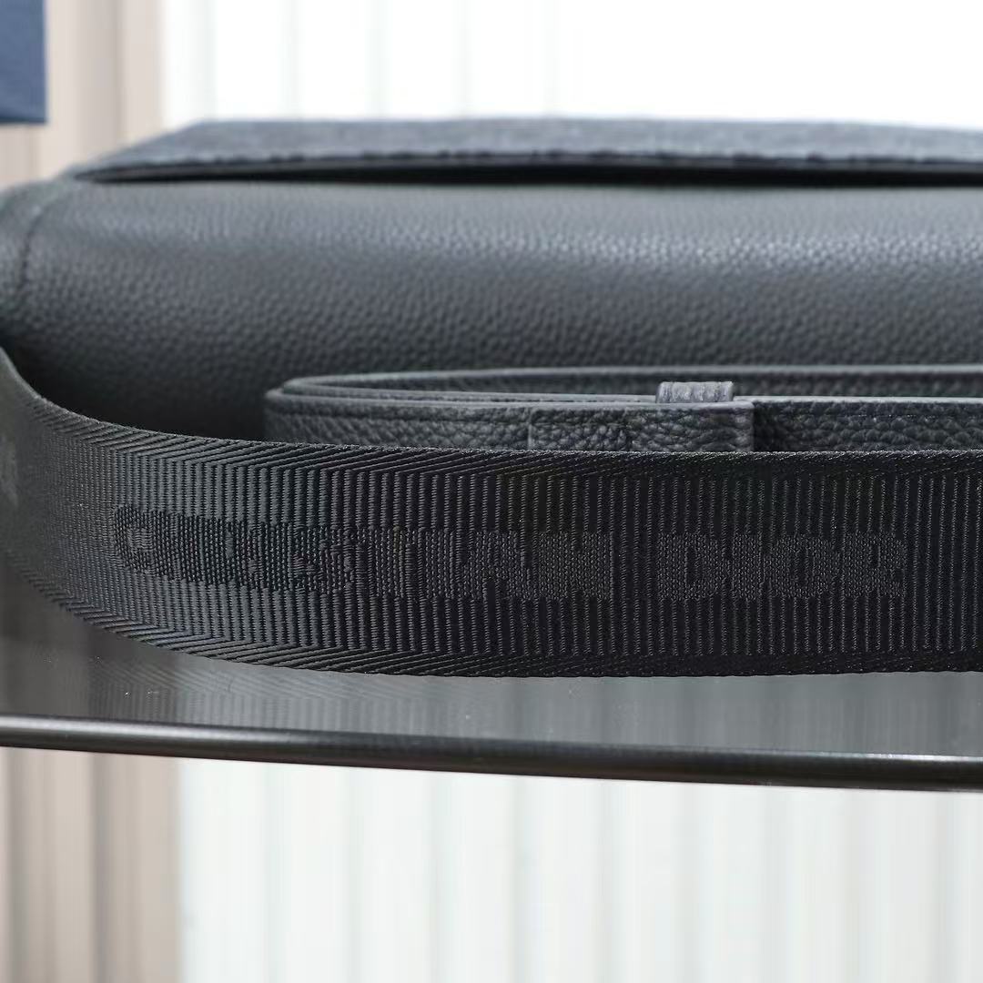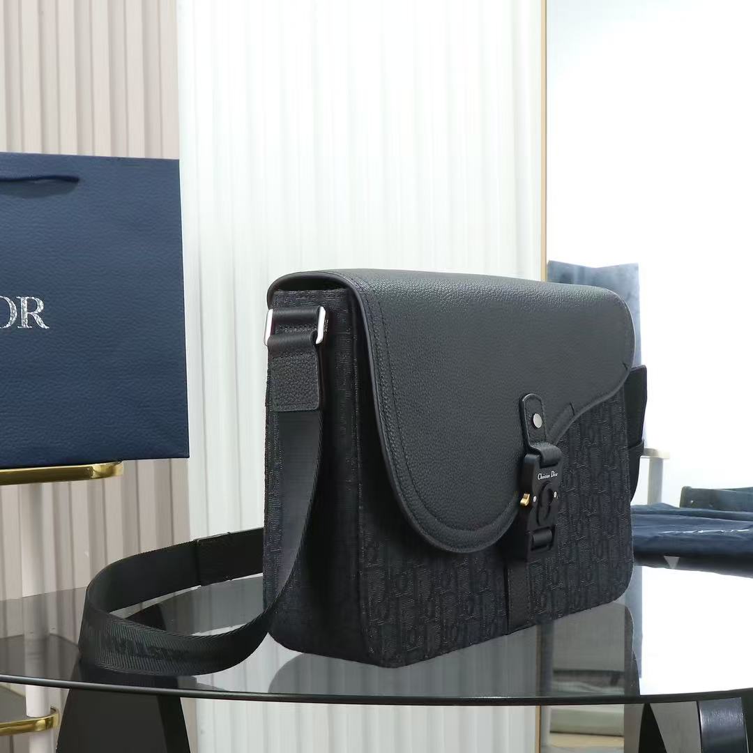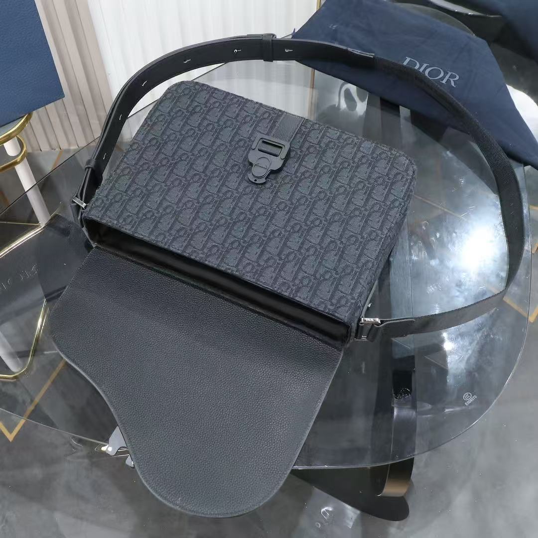 Medium Saddle Messenger Bag with Flap Black Calfskin fabric
