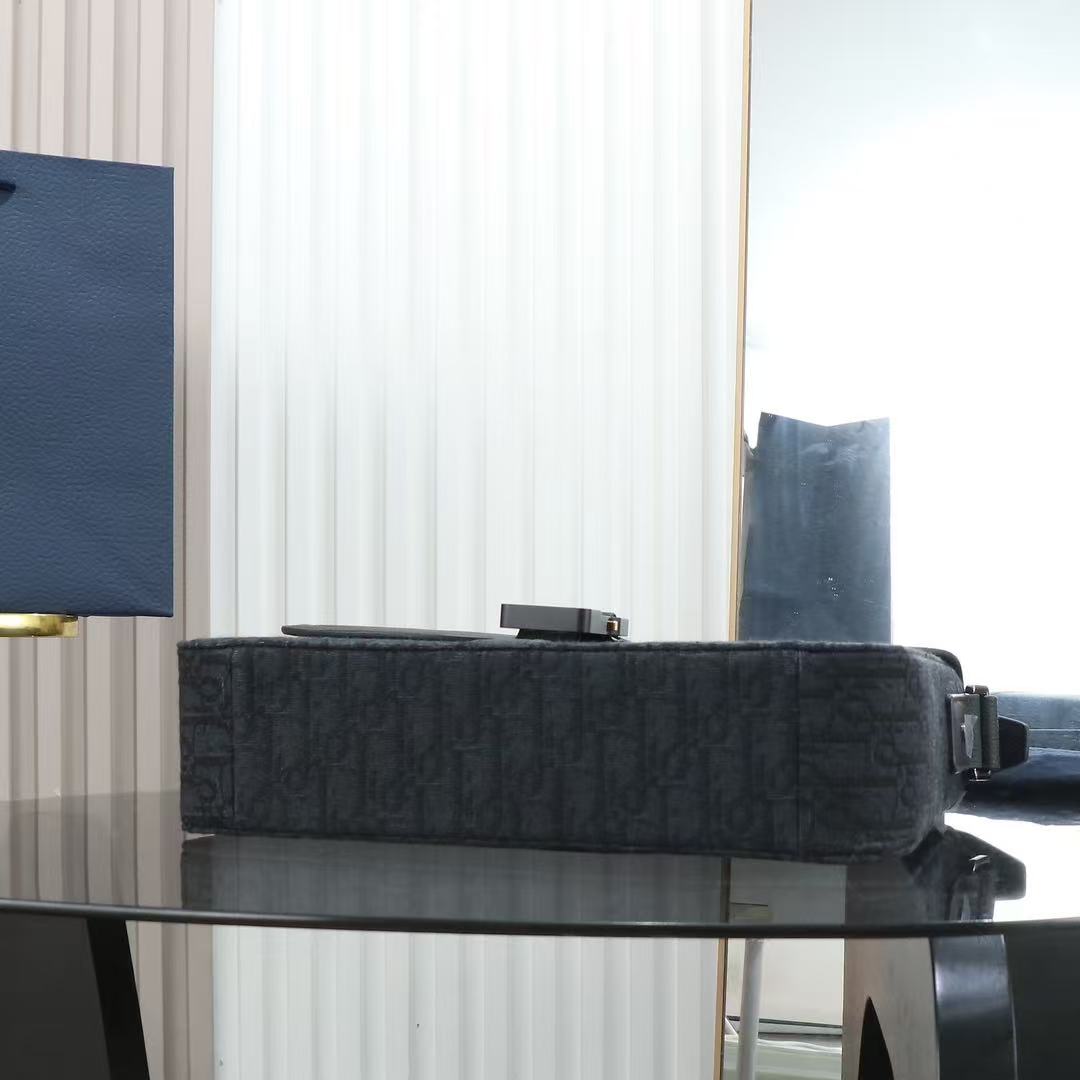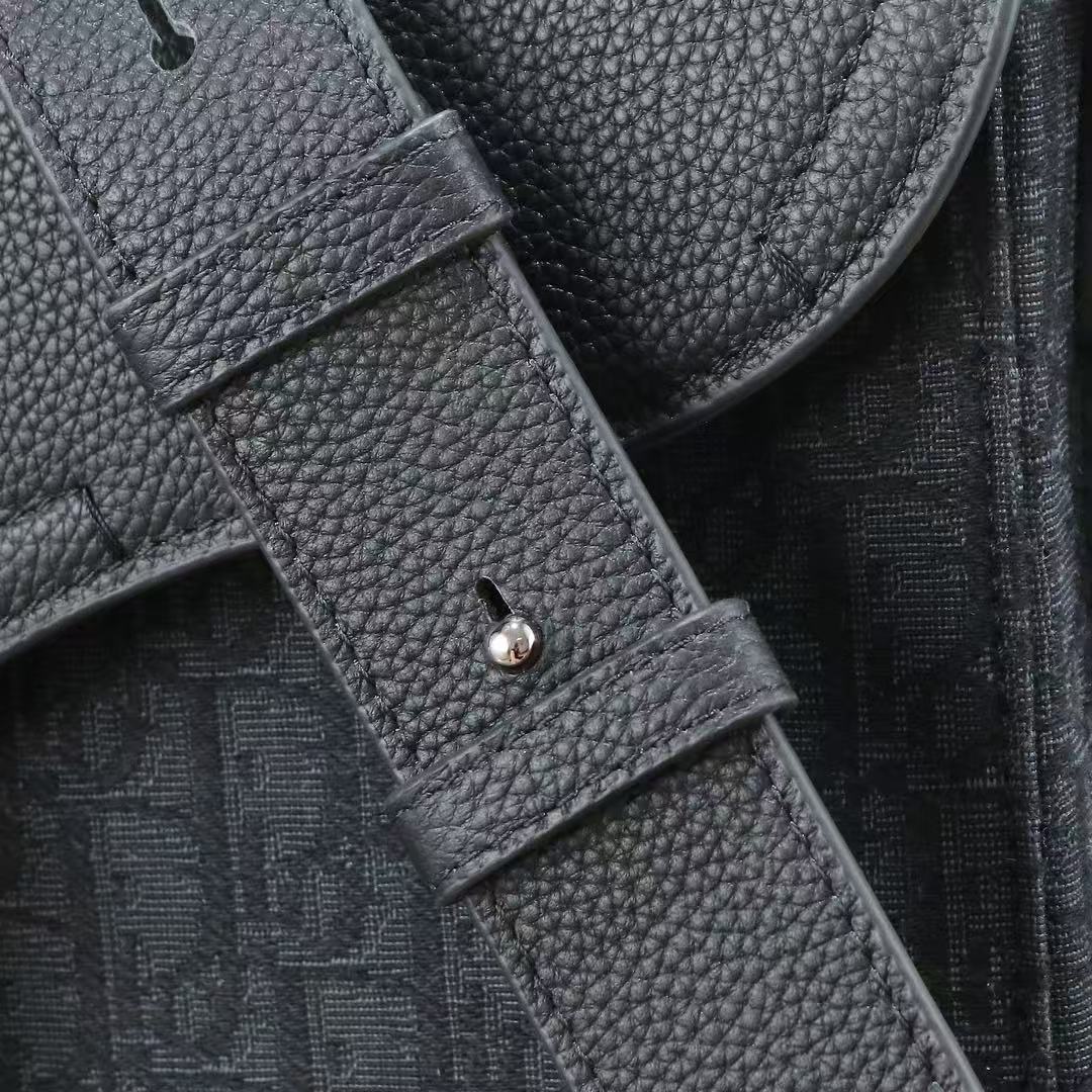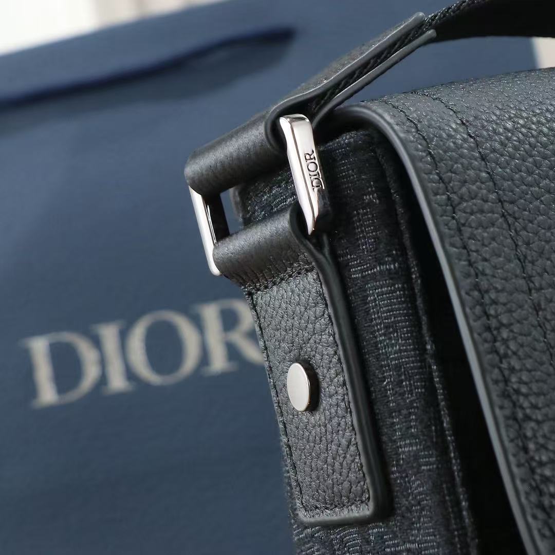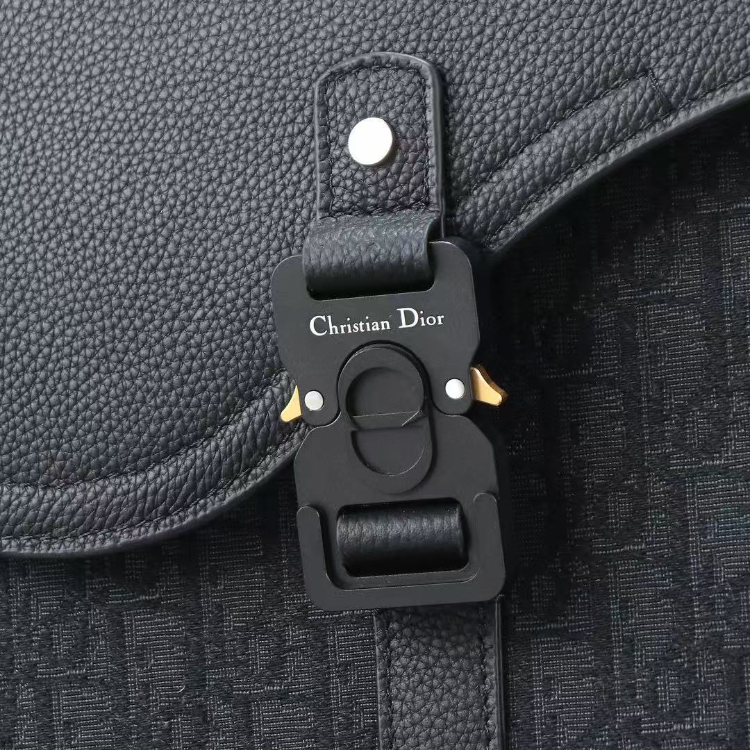 Medium Saddle Messenger Bag with Flap Black Calfskin fabric