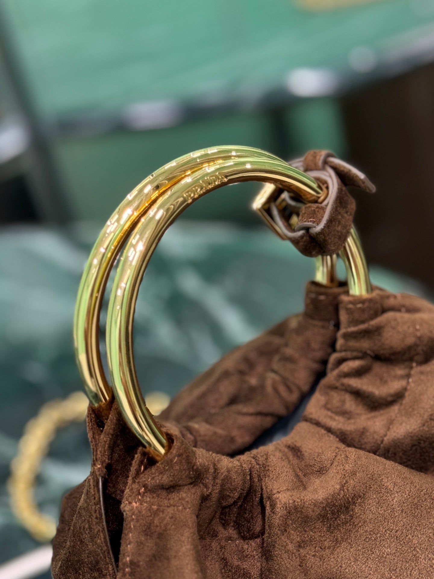 MINI BUCKET BAG 19 IN CHOCOLATE SOFT SUEDE GOLD HARDWARE