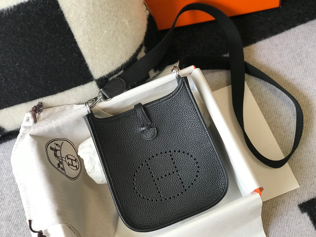 Mini Evelyne 18cm Black Togo Silver Hardware