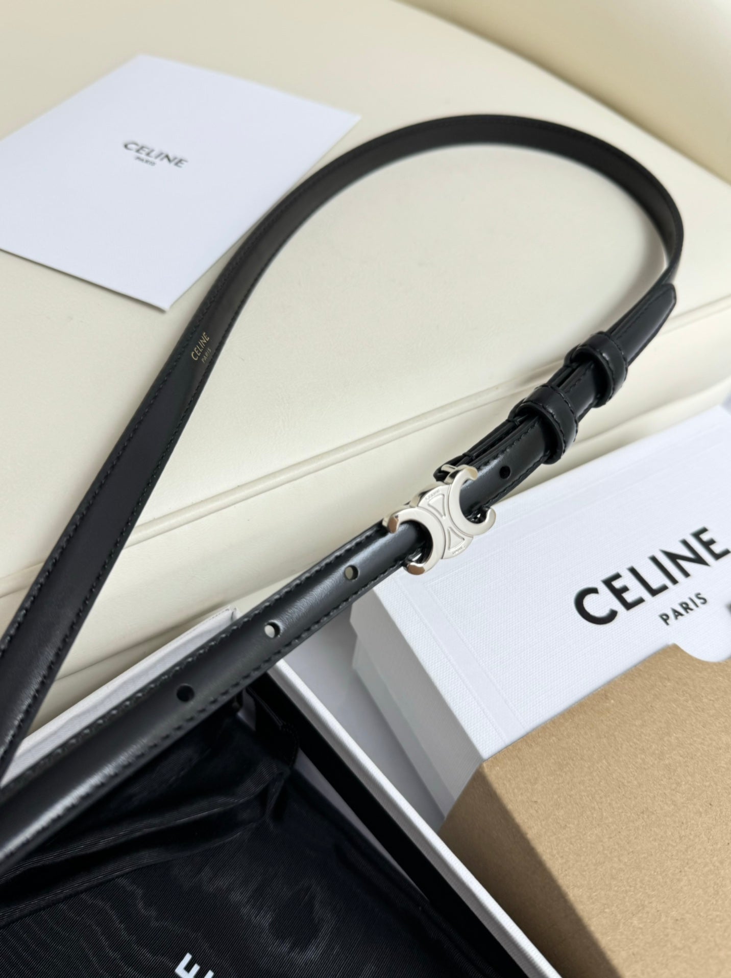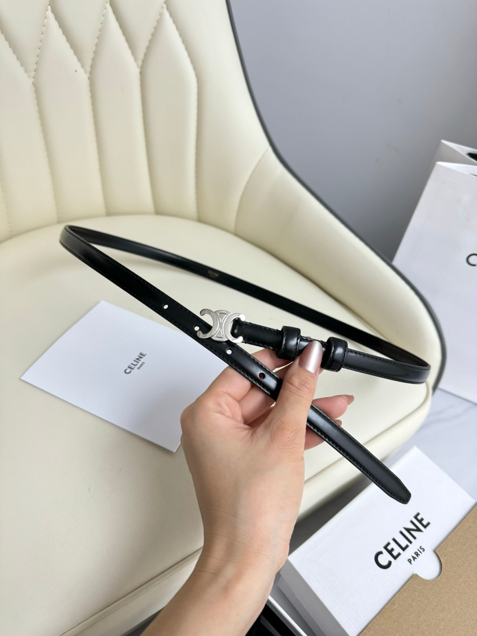 MINI TRIOMPHE BELT 13 MM BLACK LEATHER SILVER HARDWARE