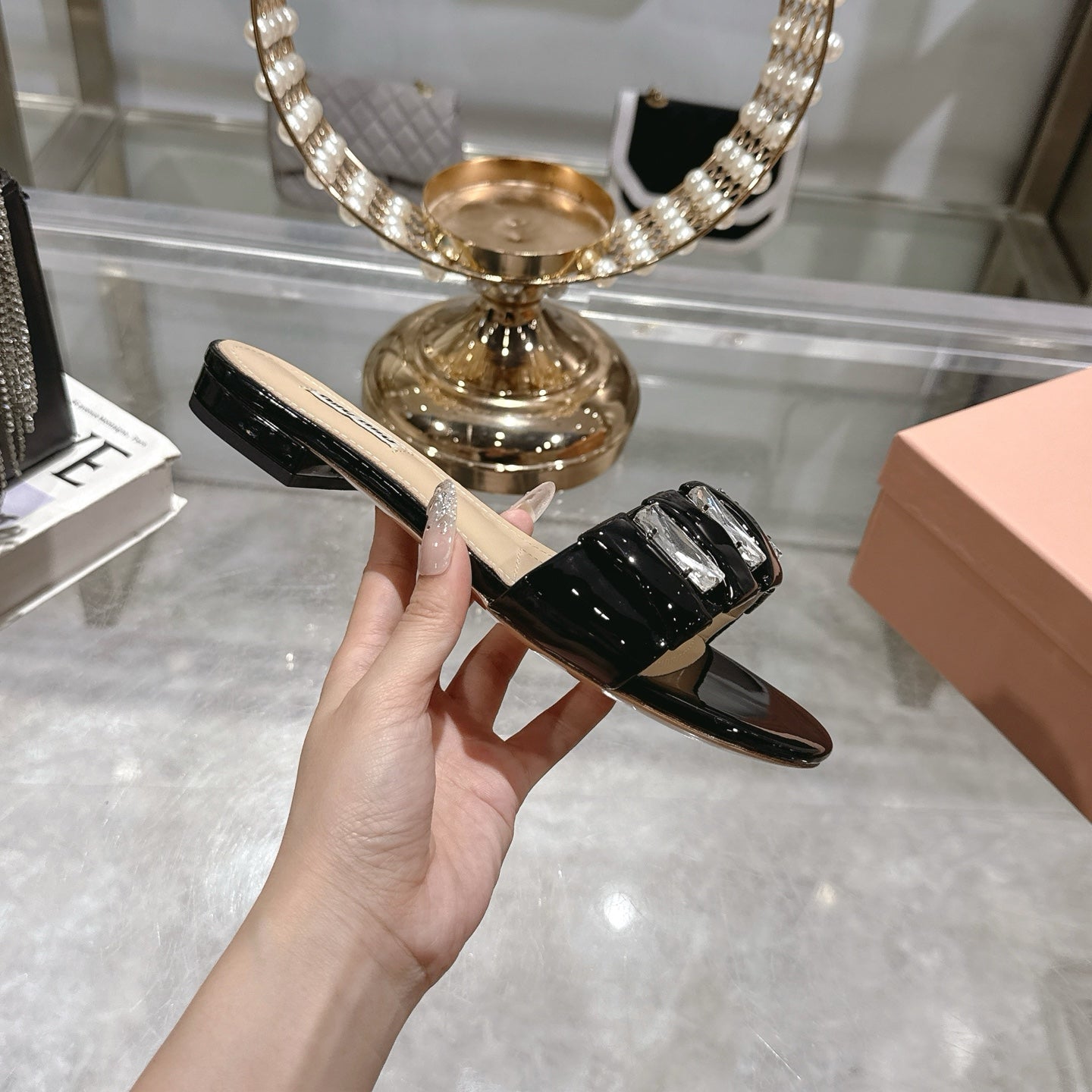 Miu 25C Slippers Black Patent Leather 235322
