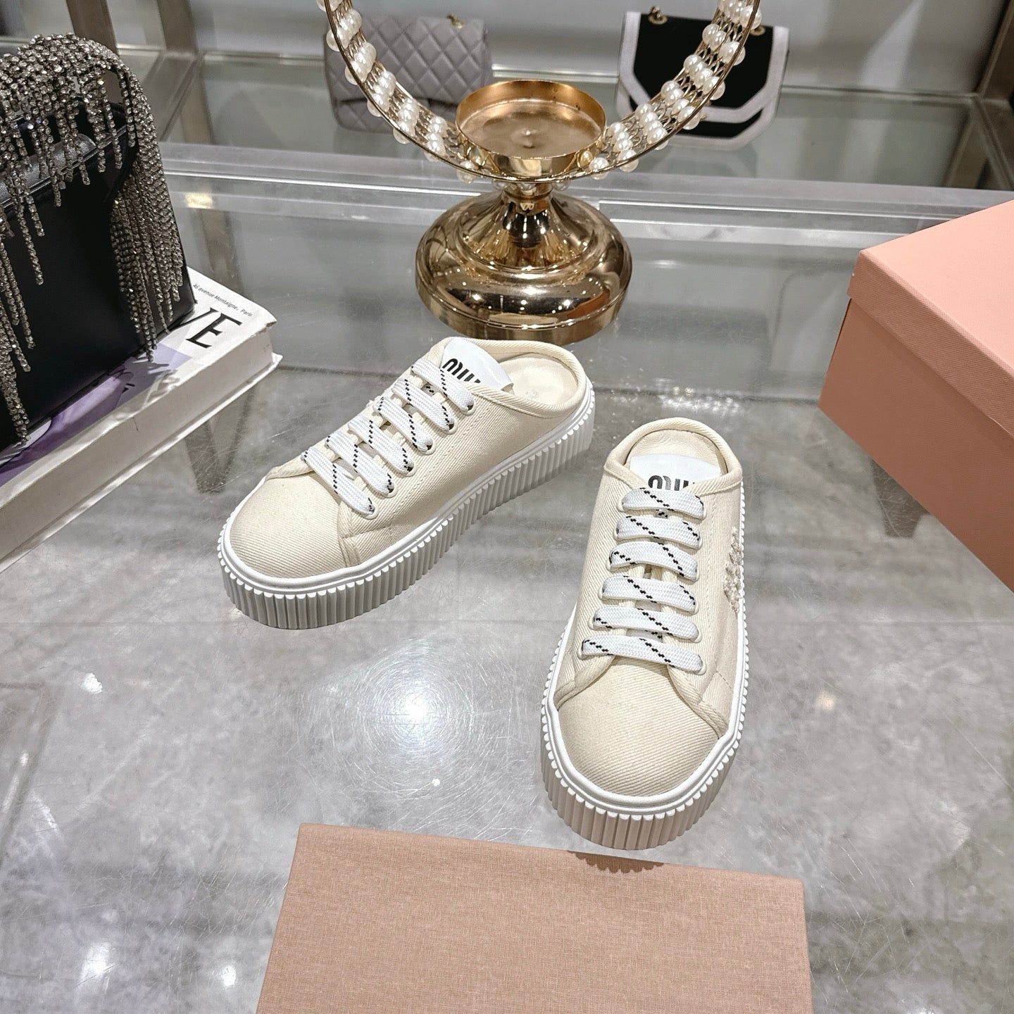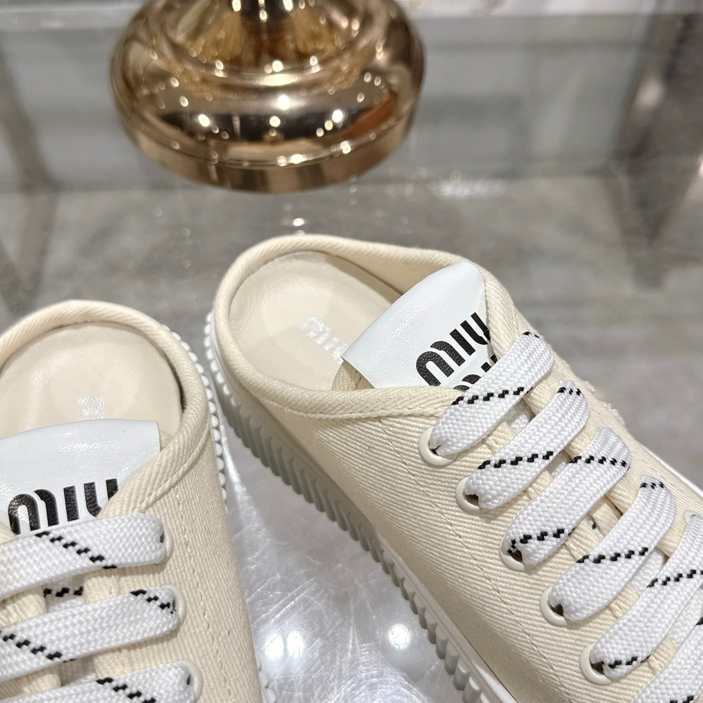 Miu 25C Sneaker Mules Ivory Demin Fabric 235317