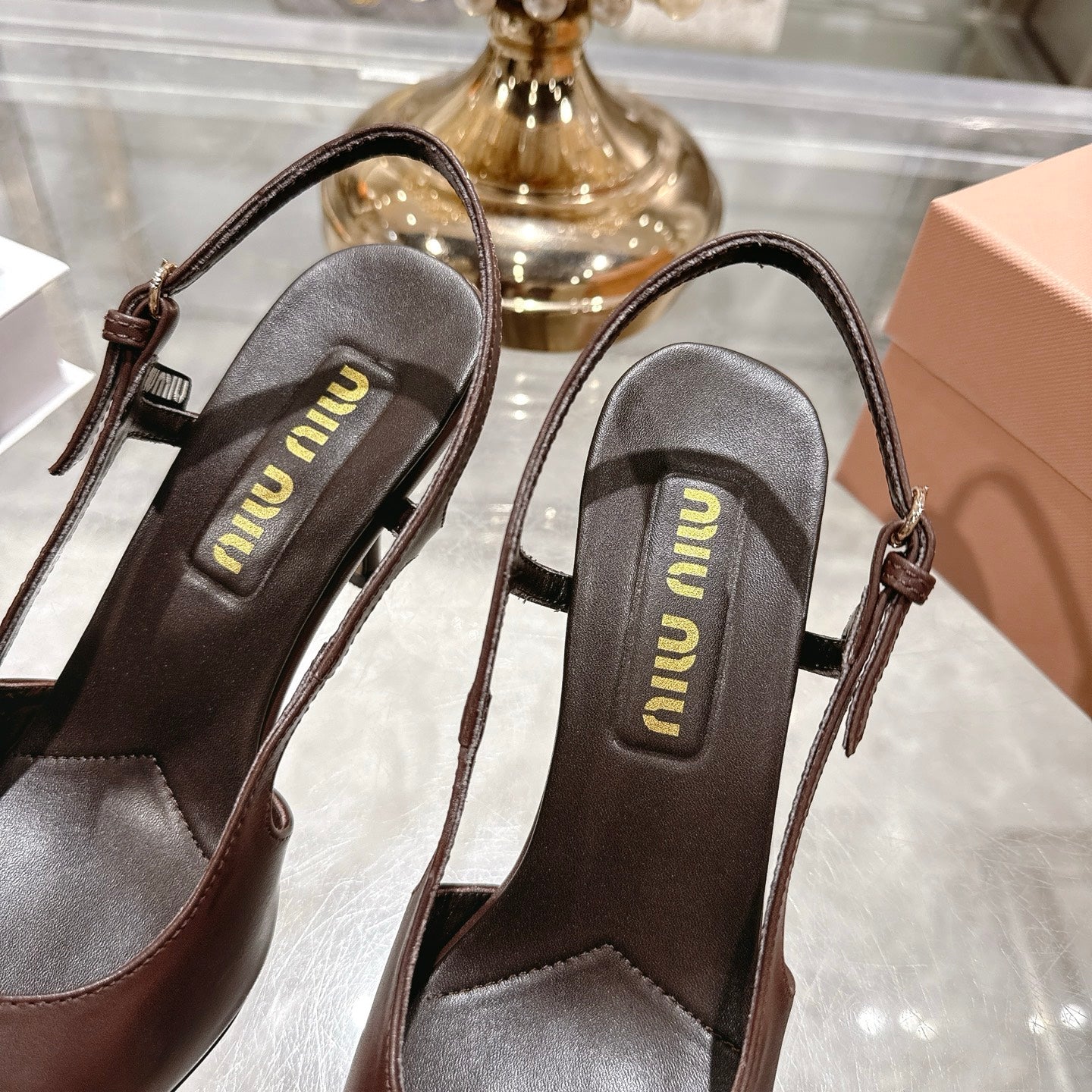Miu 26 High Heel Slingback 75 Brown Chocolate Cowhide 592082