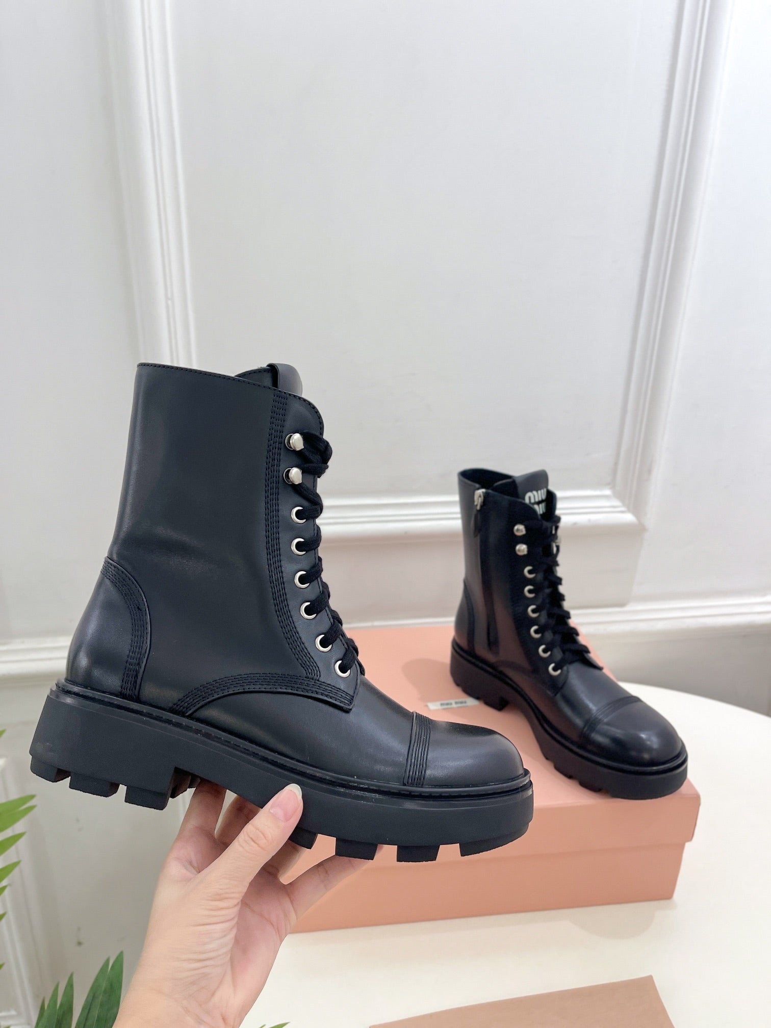 Miu Laced Booties Black Calfskin