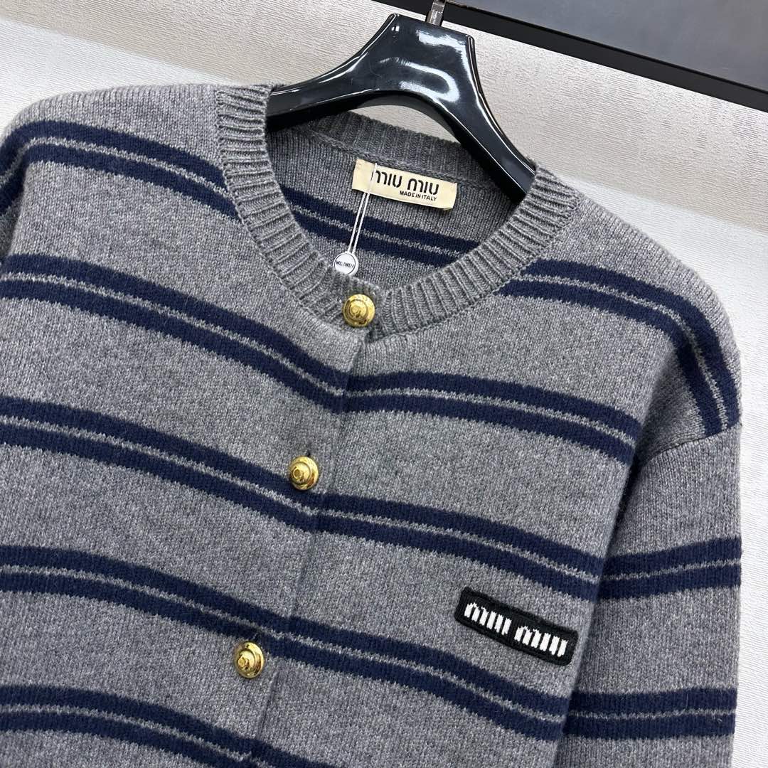 Miu Miu 25 Cardigan Grey Mix Navy Wool 303603