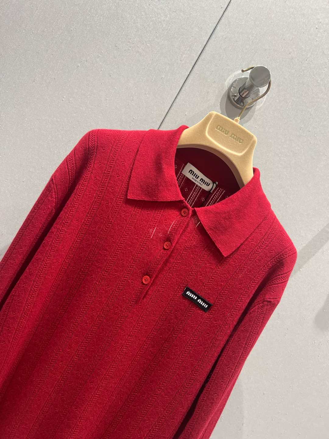 Miu Miu 25 Knitted Polo Shirt Red Cashmere 209039