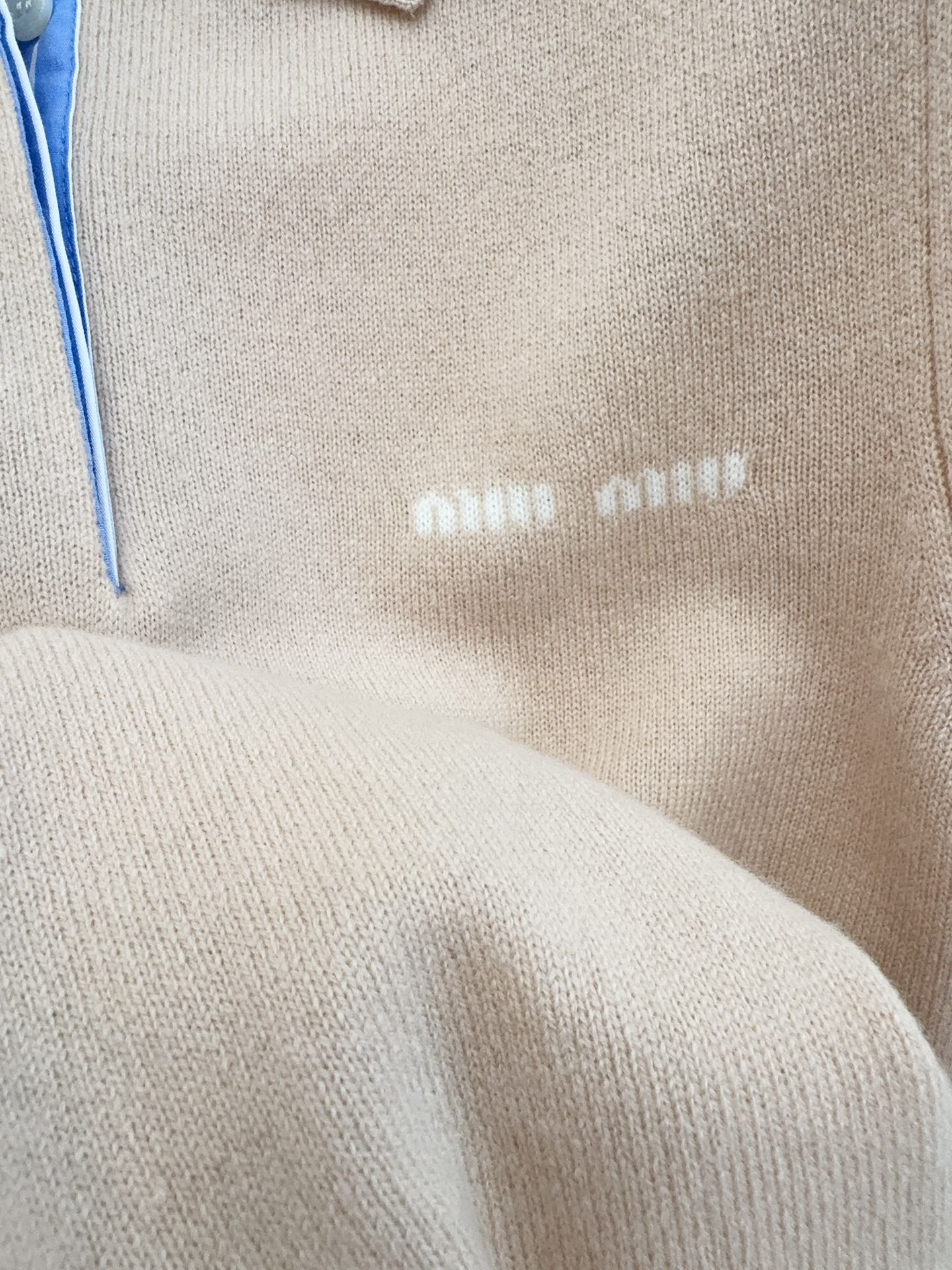 Miu Miu 25 Striped Polo Short-sleeved Sweatshirt Beige Cashmere