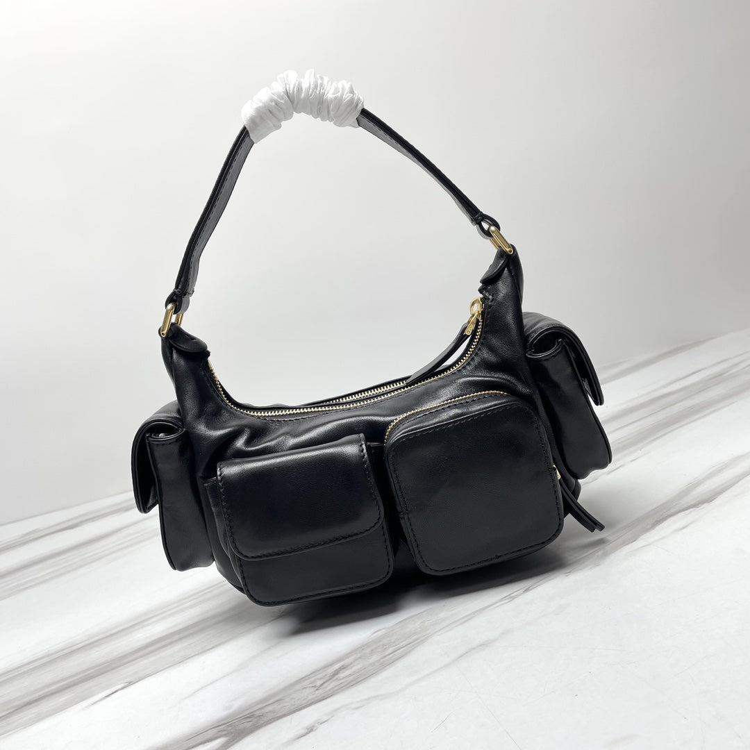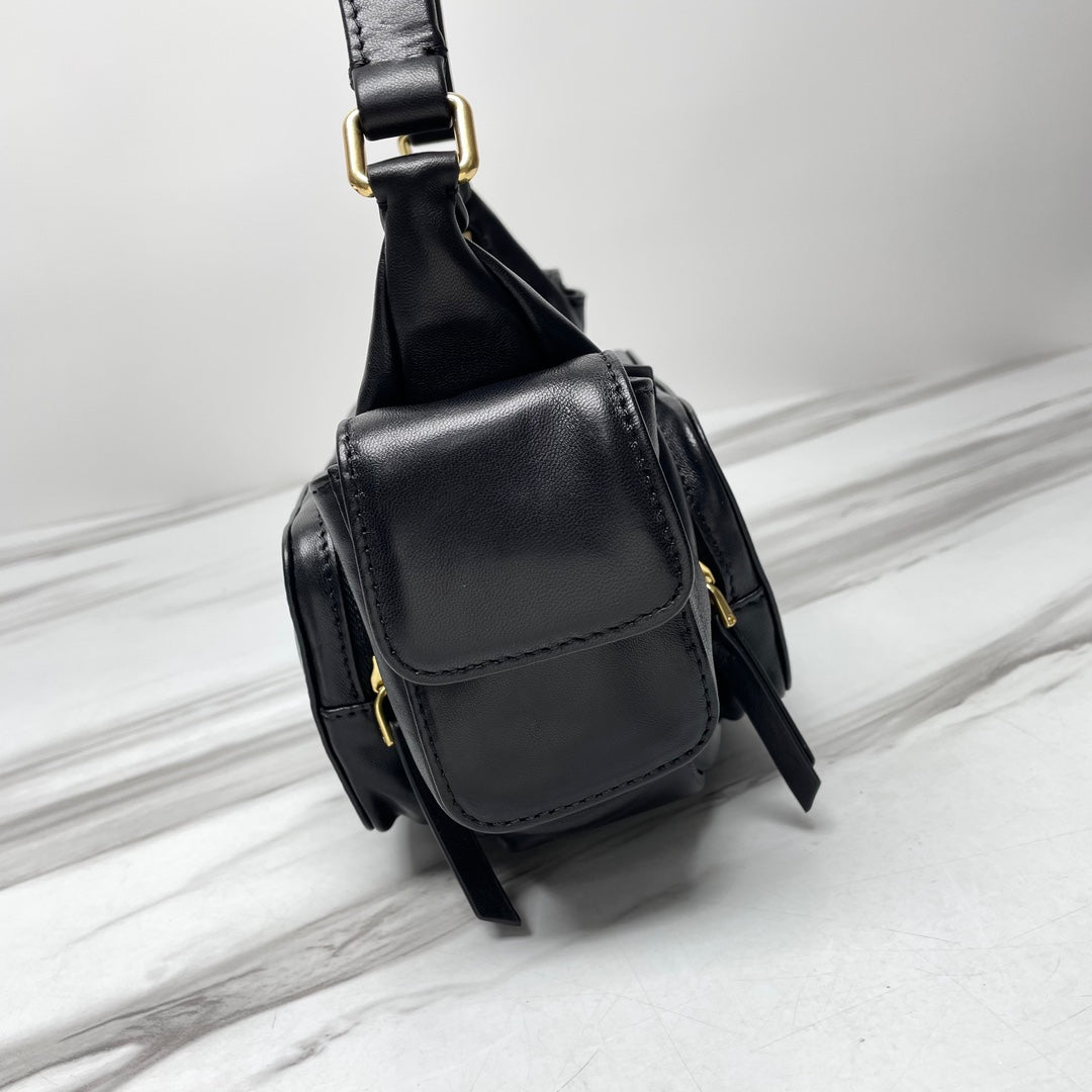 MIU POCKET 21CM SHOULDER BAG BLACK CALFSKIN