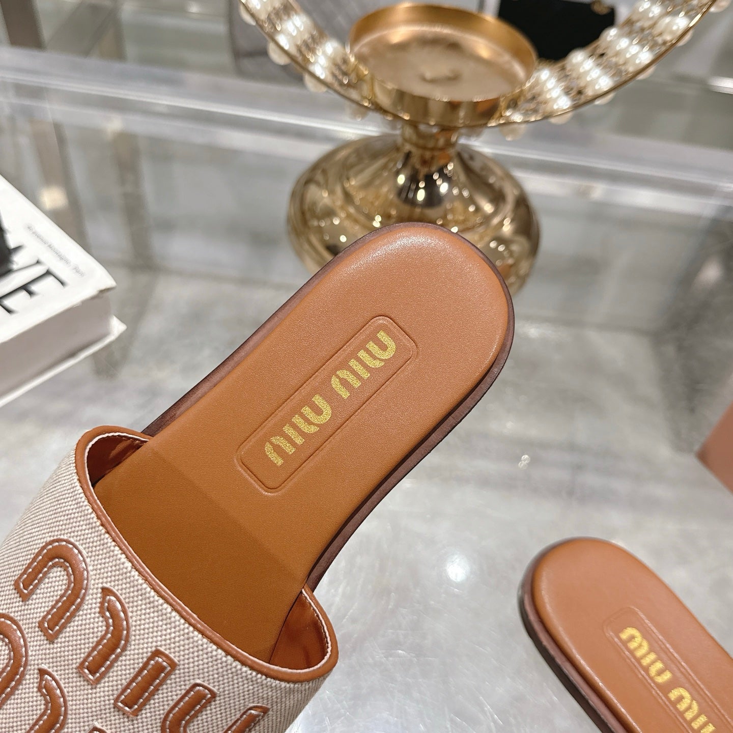 Miu Slippers Brown Leather 235321