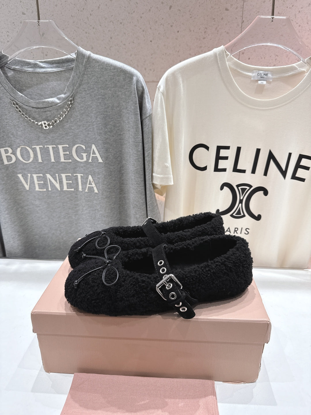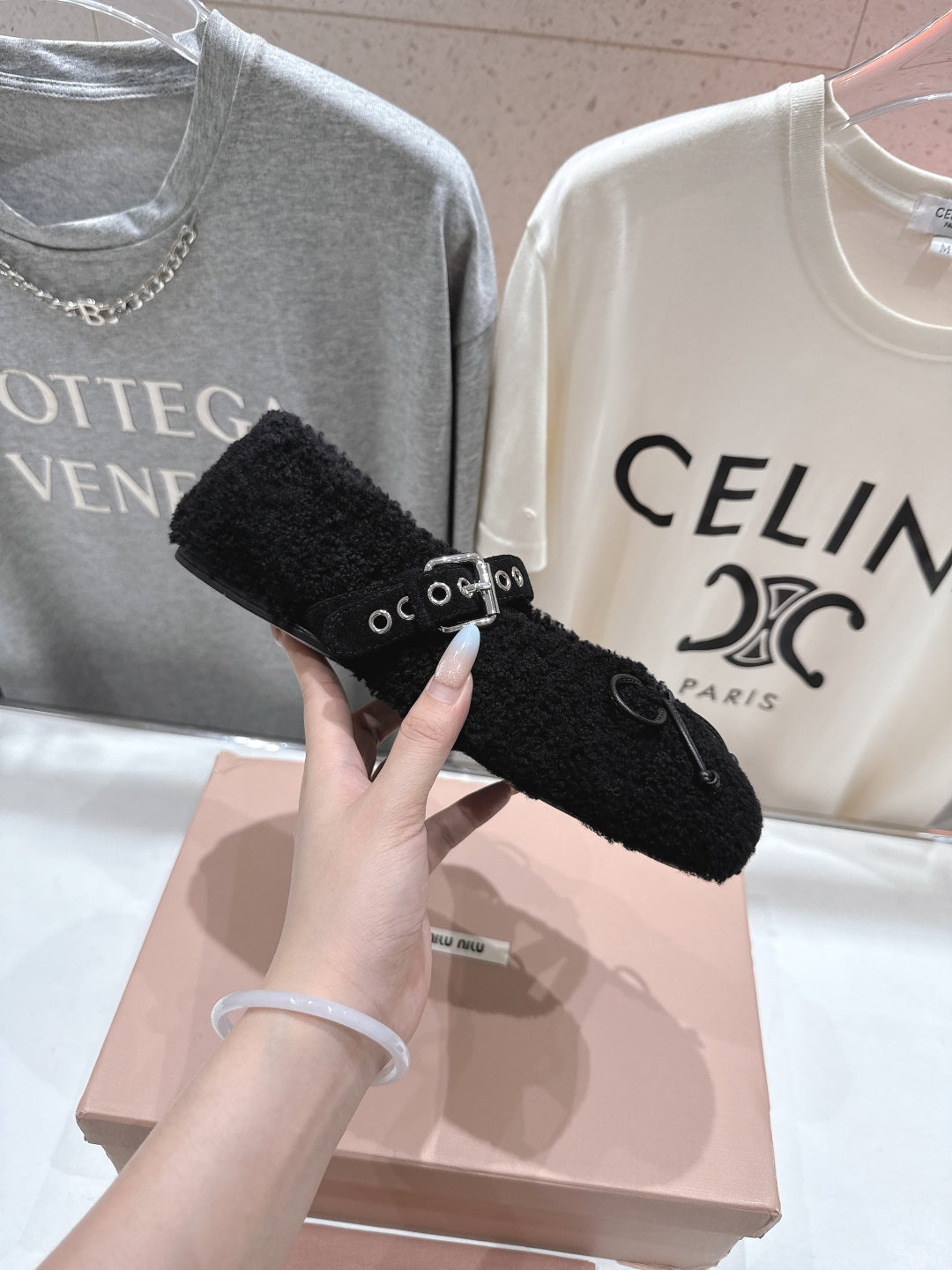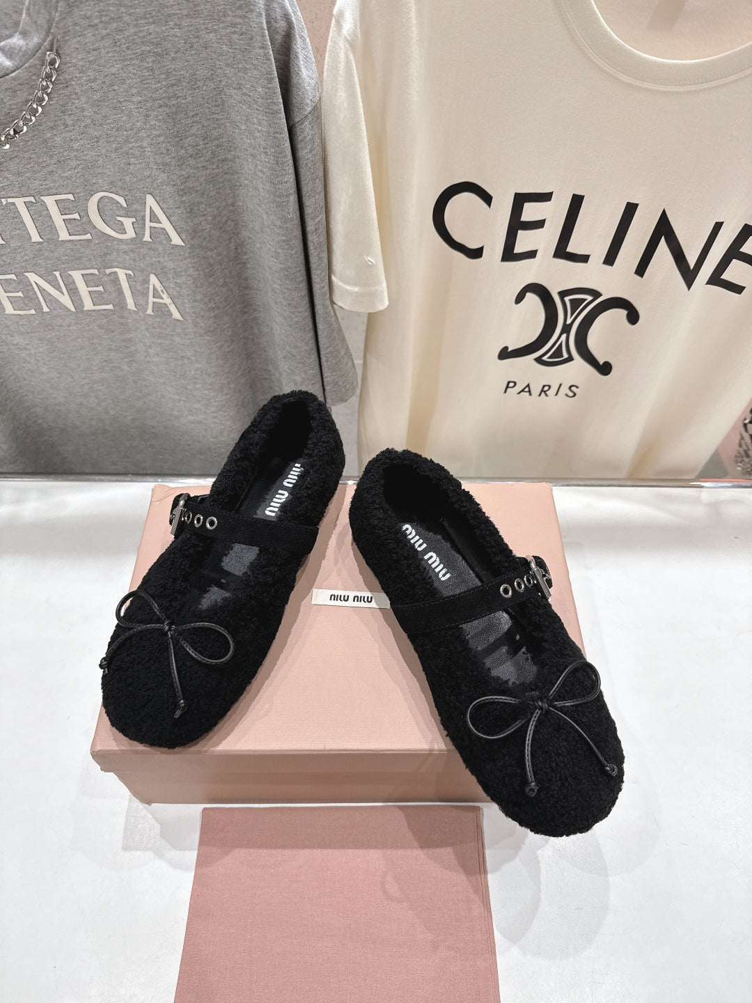 MiuMiu 25 Ballet Flat Black Lambskin Wool 535592