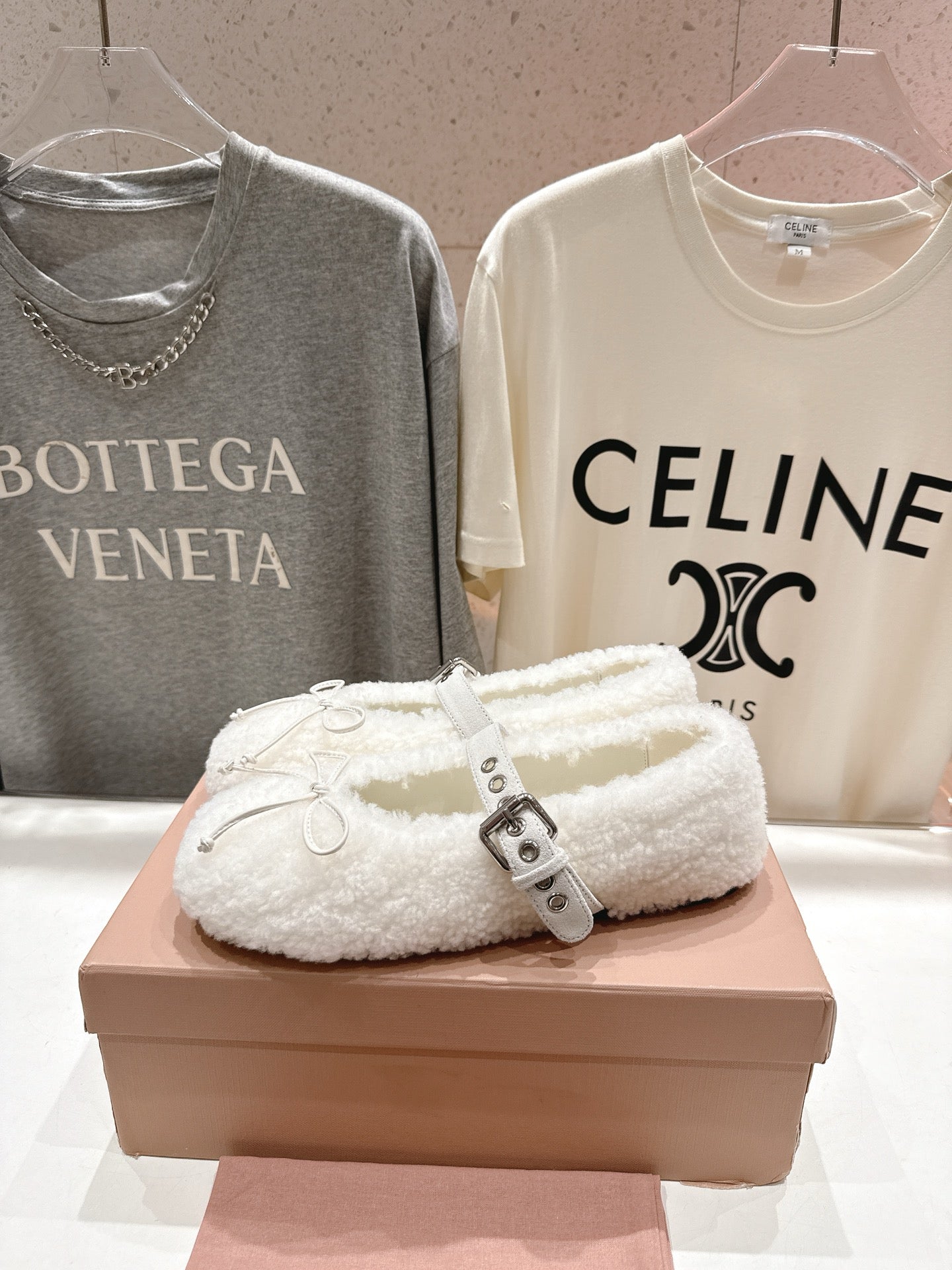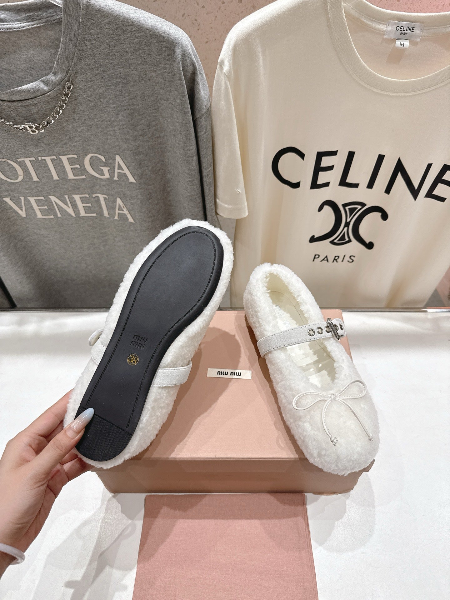 MiuMiu 25 Ballet Flat White Lambskin Wool 535591