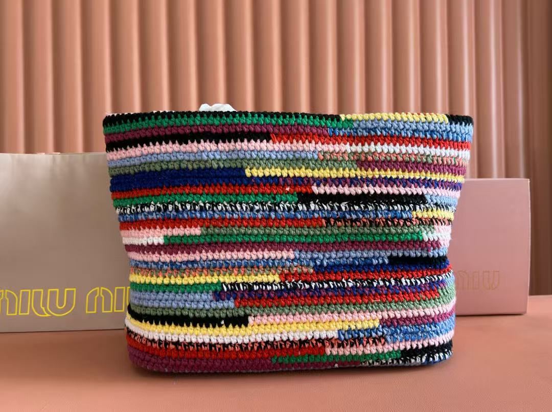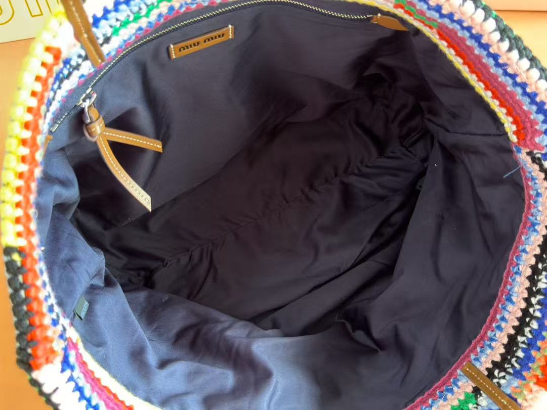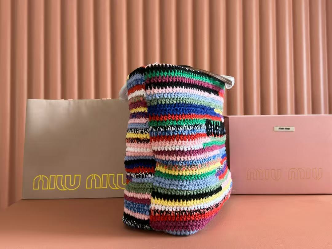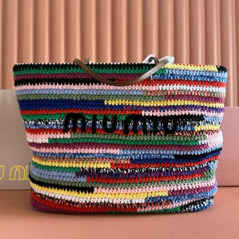 Miumiu Bag 40cm Multicolor Straw-woven And Cotton