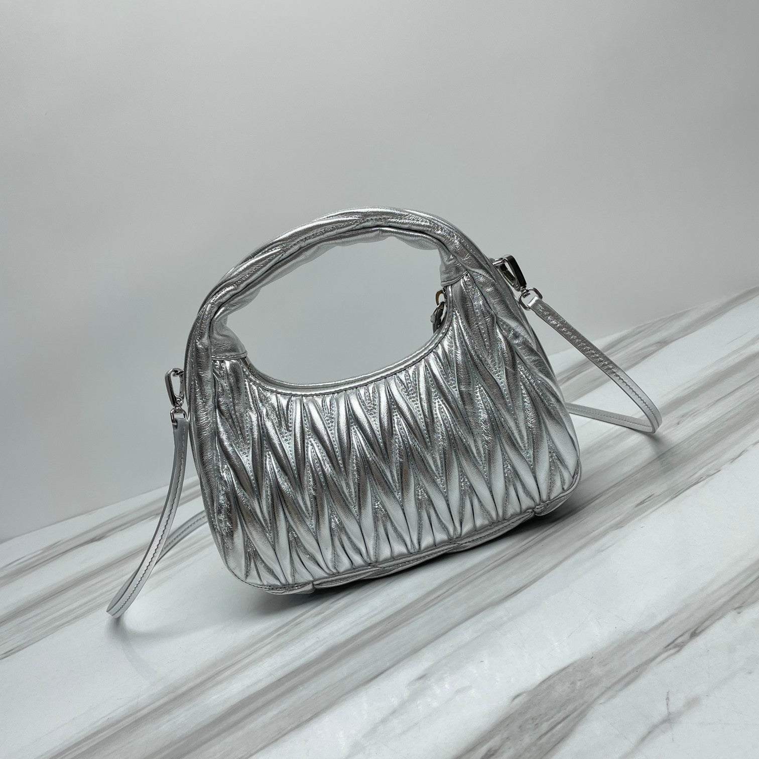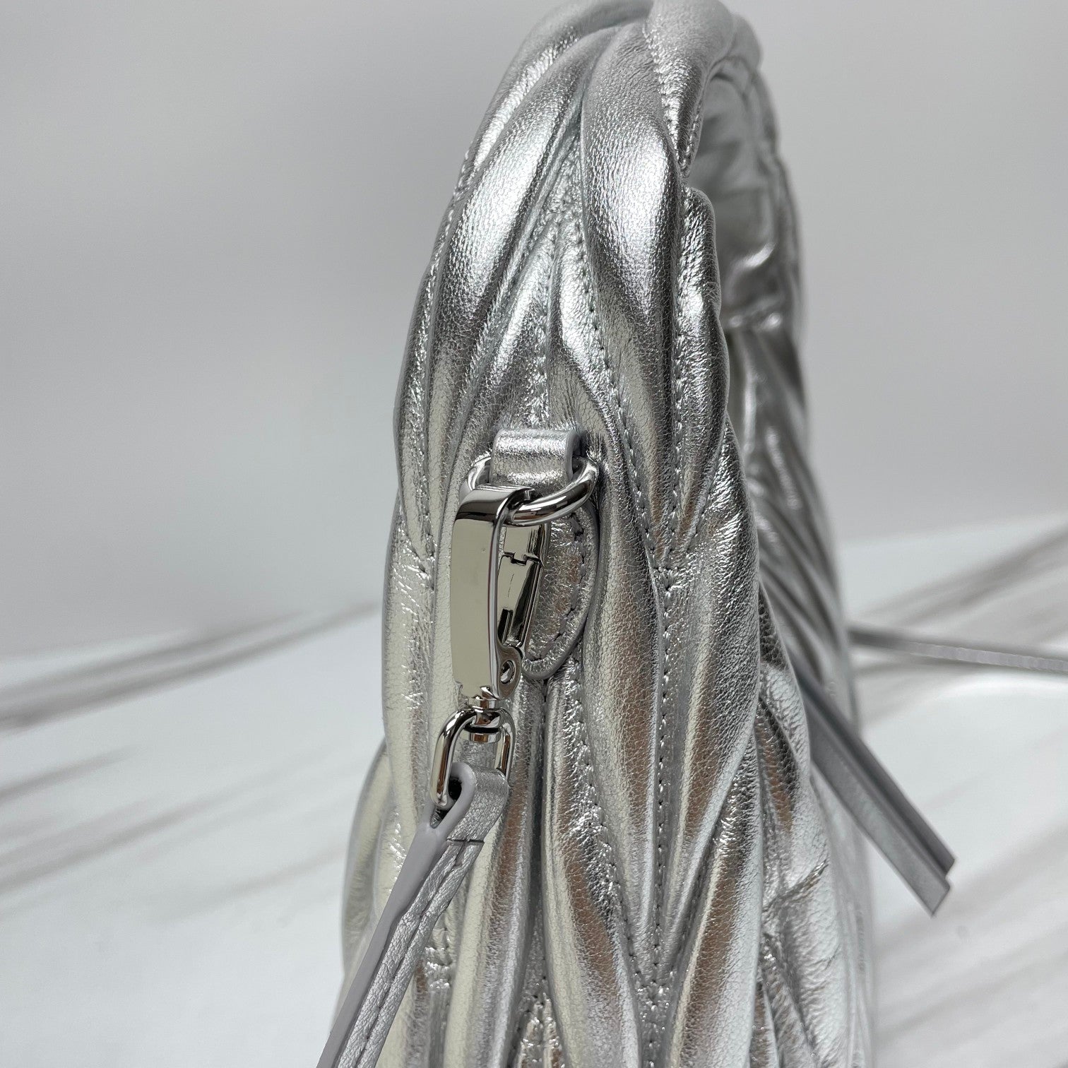 miuwander hobo 23 silver metalic matelasse leather