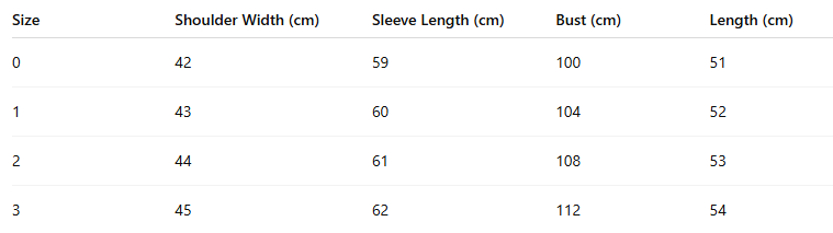 Size : 0,1,2,3
