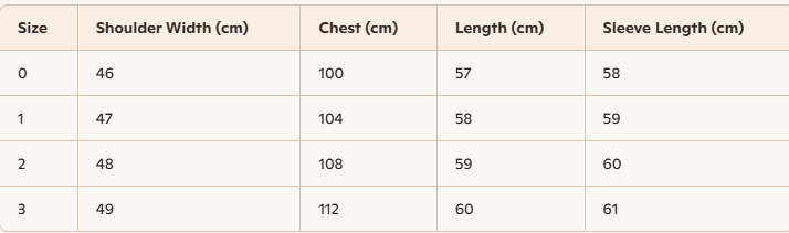 Size : 0,1,2,3