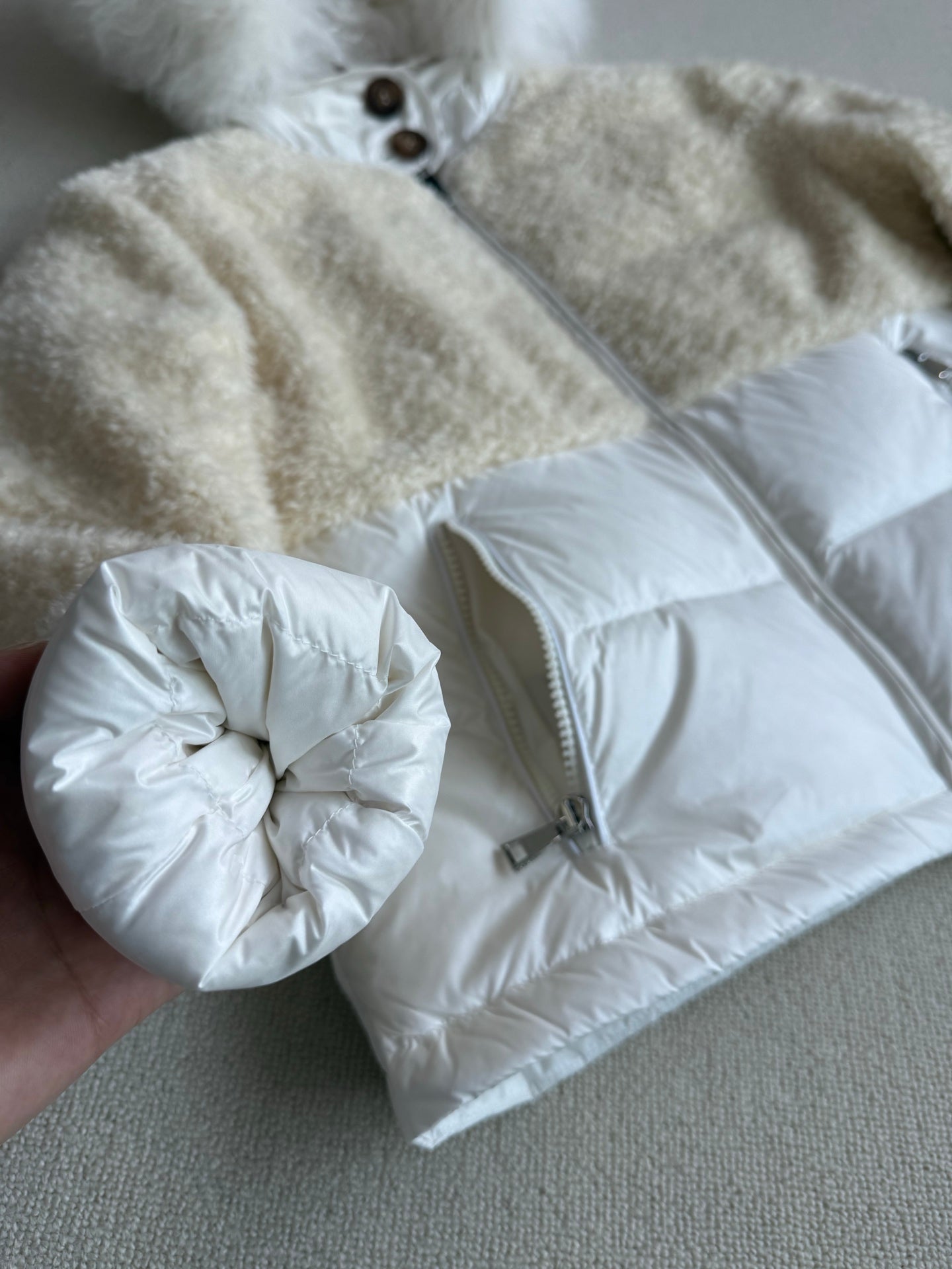 Moncler 2025 Marne Combo Puffer Jacket Cream White Wool Down
