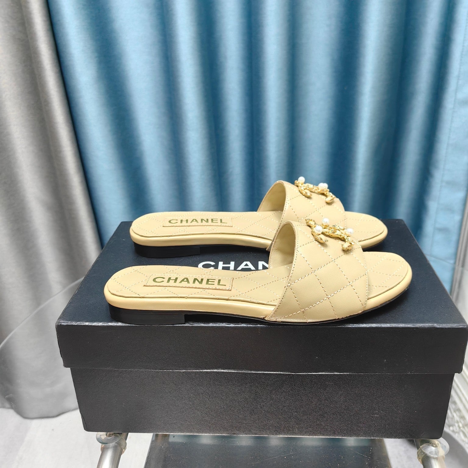 mule sandal quilted beige calfskin mop