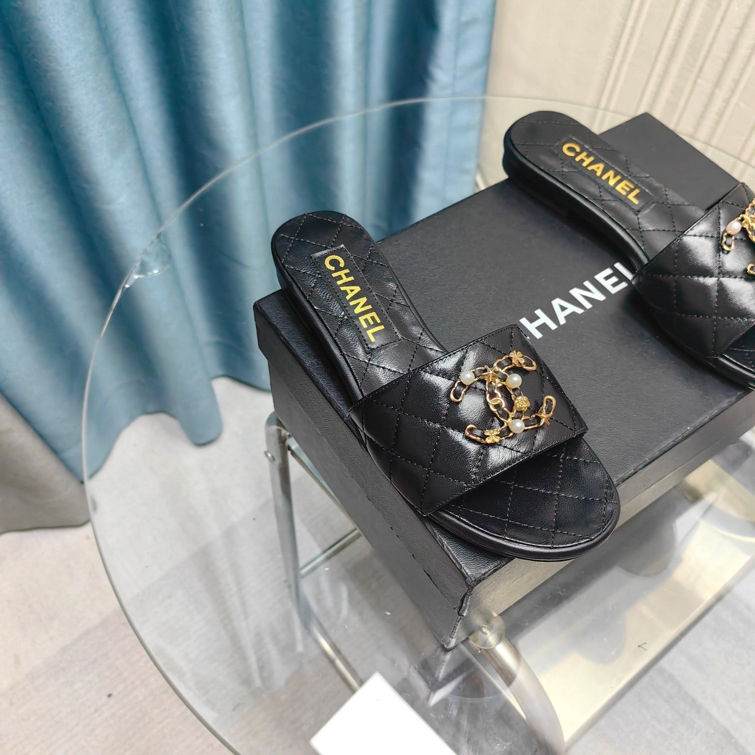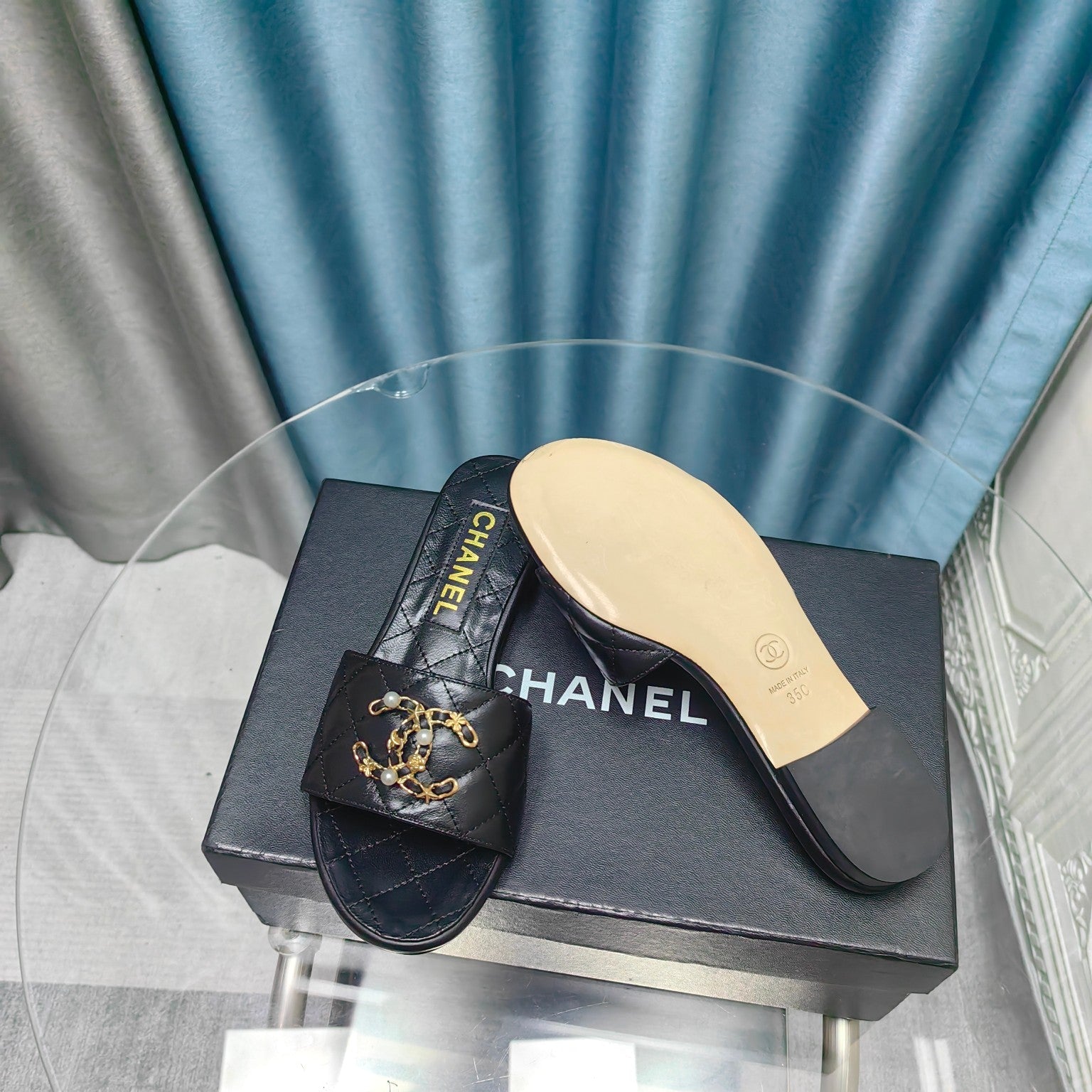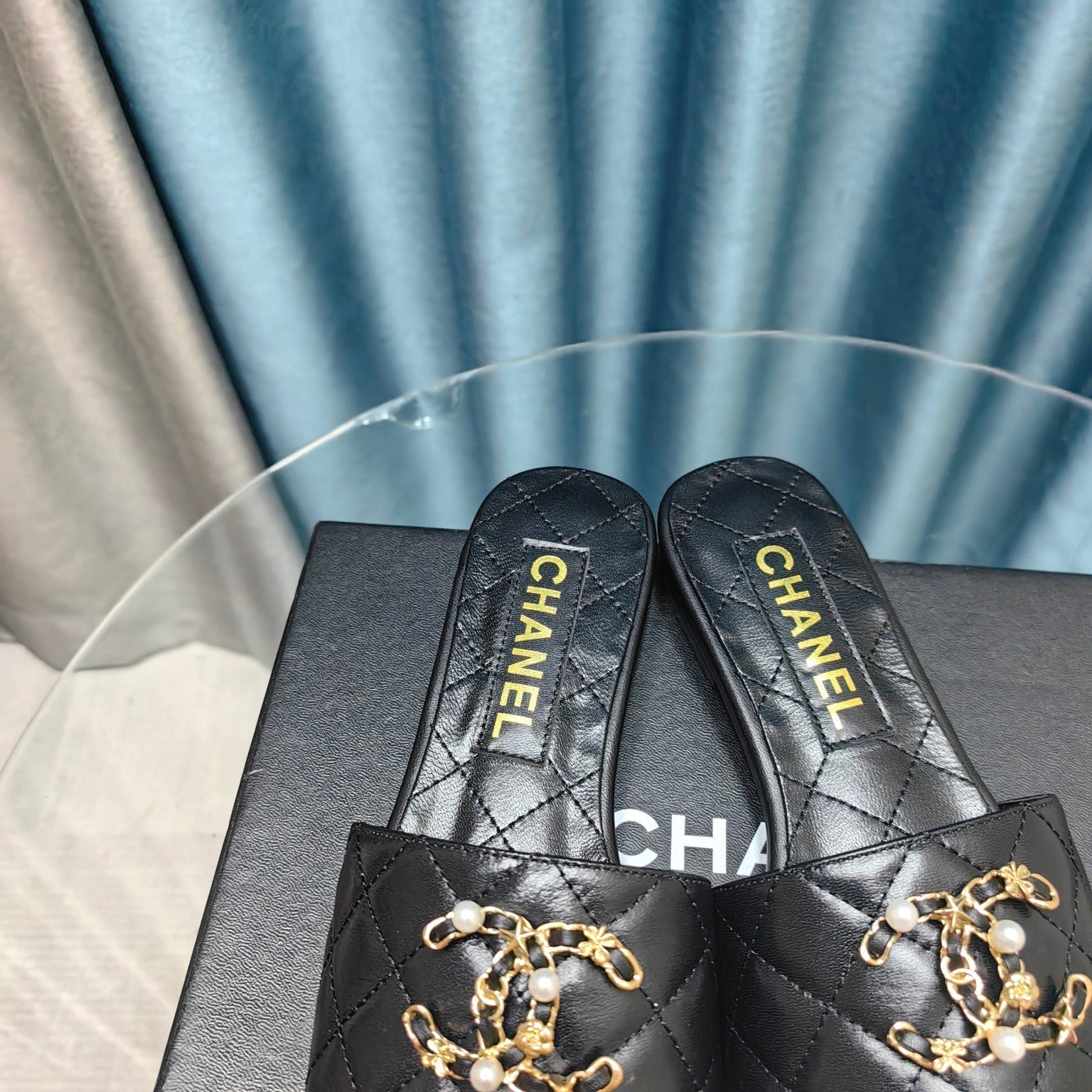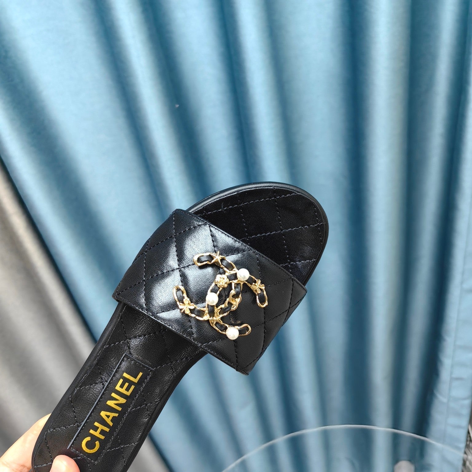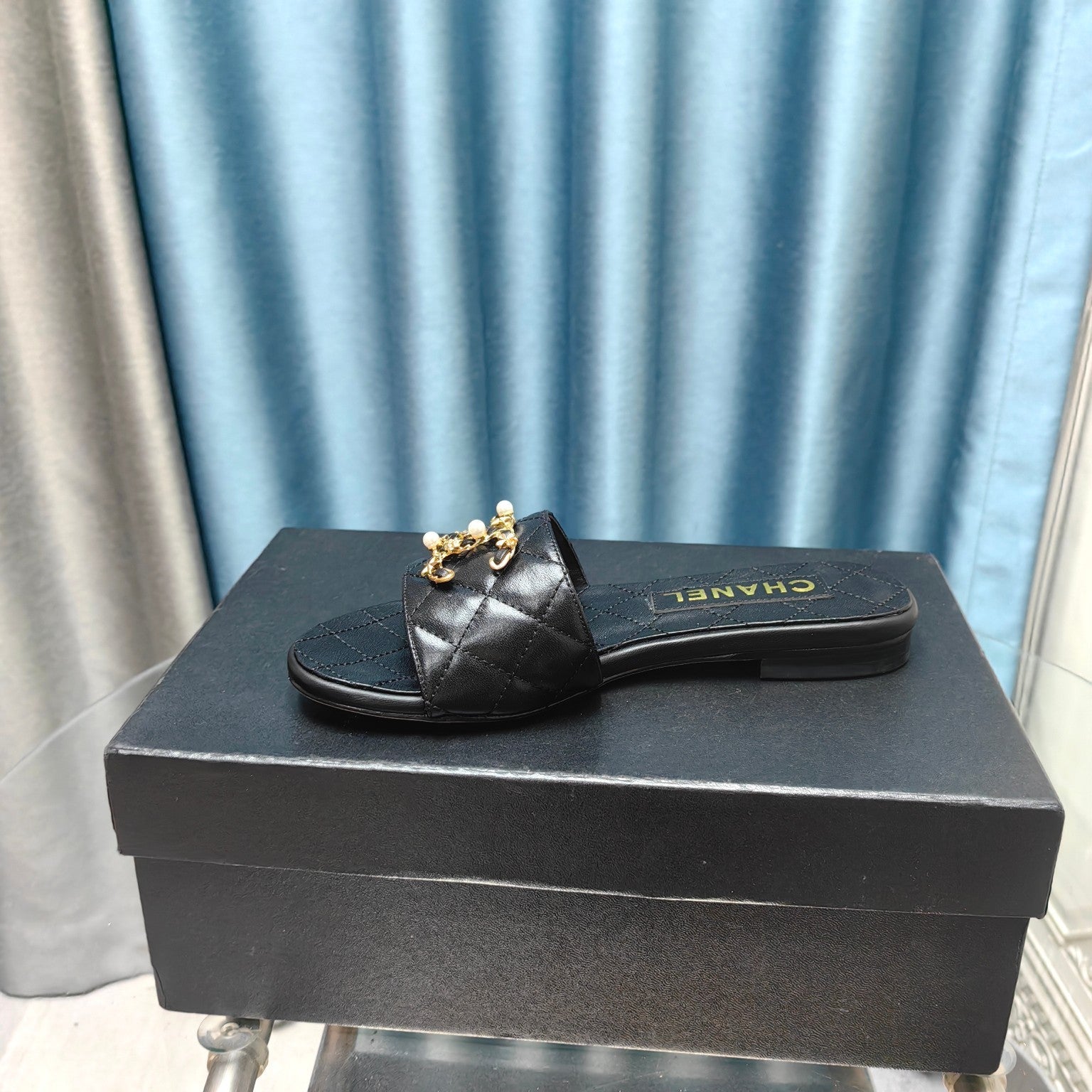 mule sandal quilted black calfskin mop