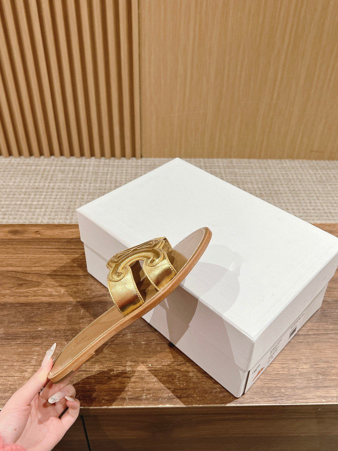 mule triomphe gold brown metalic calfskin
