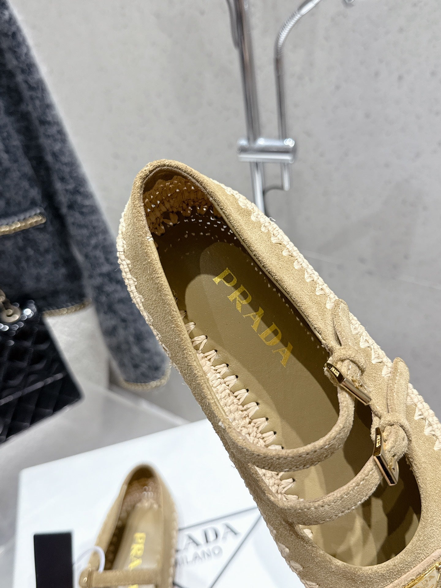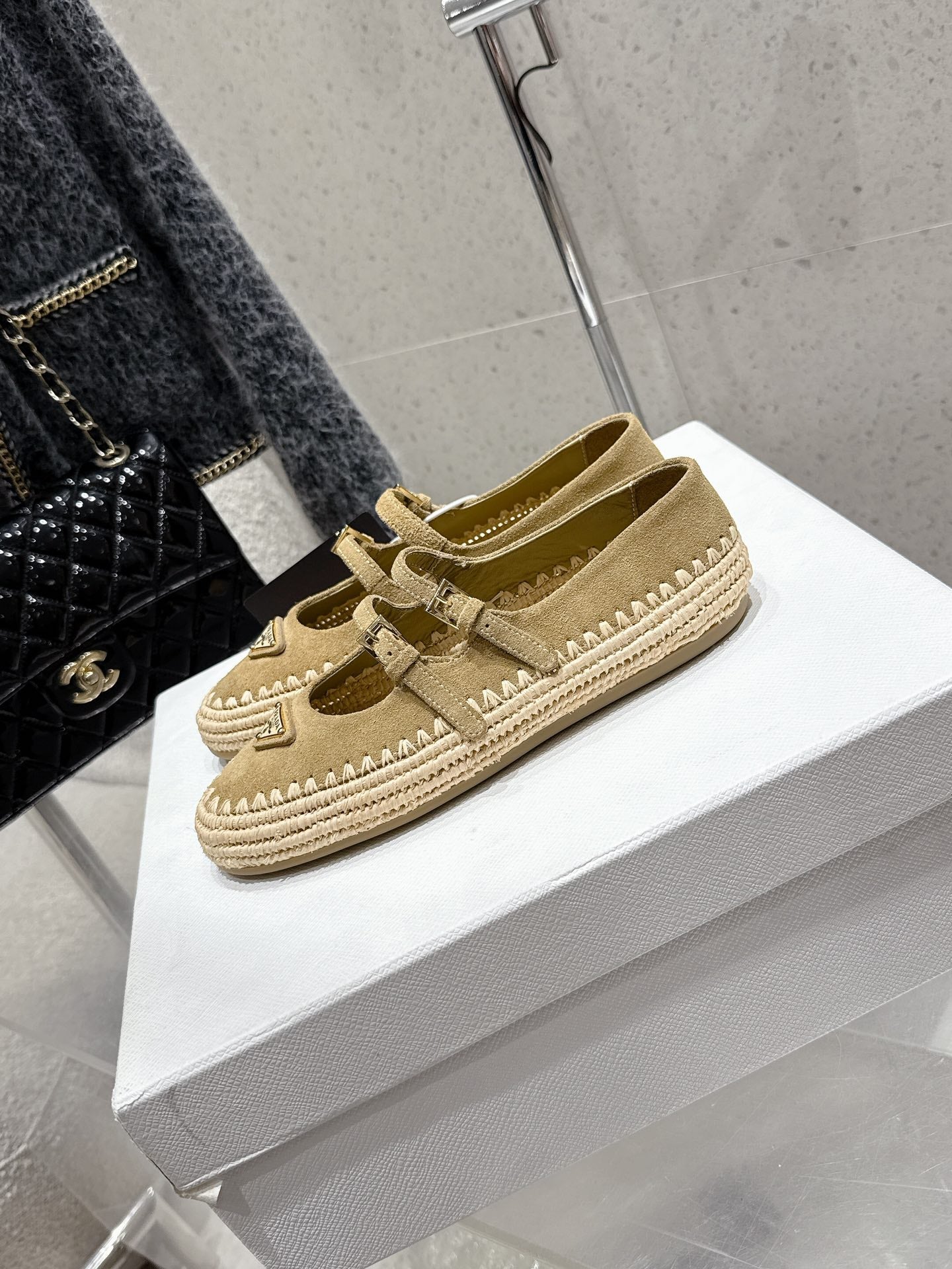 Pra 2025 Ballet Flat Beige Suede Woven 554291