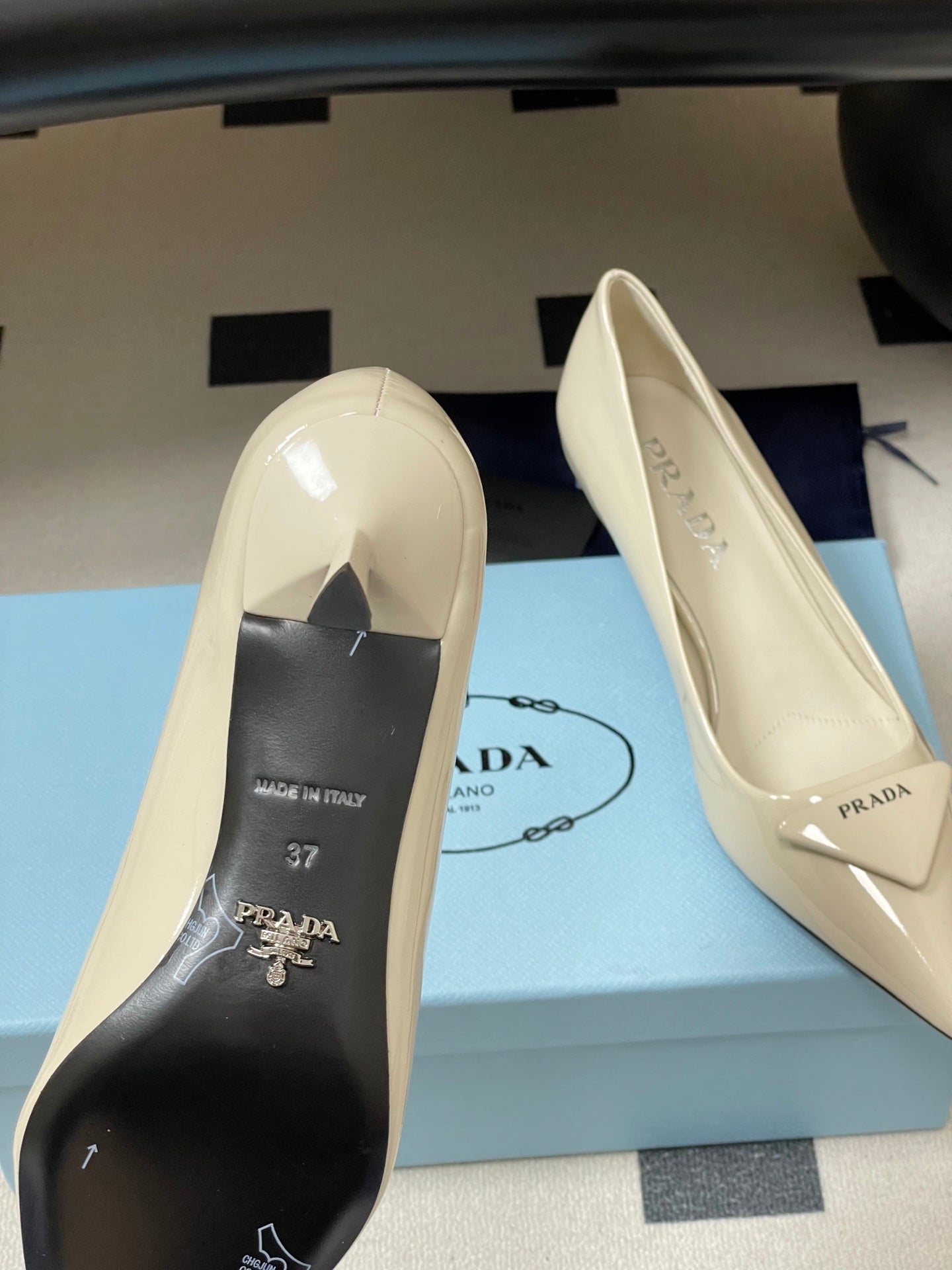 PRA 26SS Pointed Toe Heels Ivory Patent Leather 593836