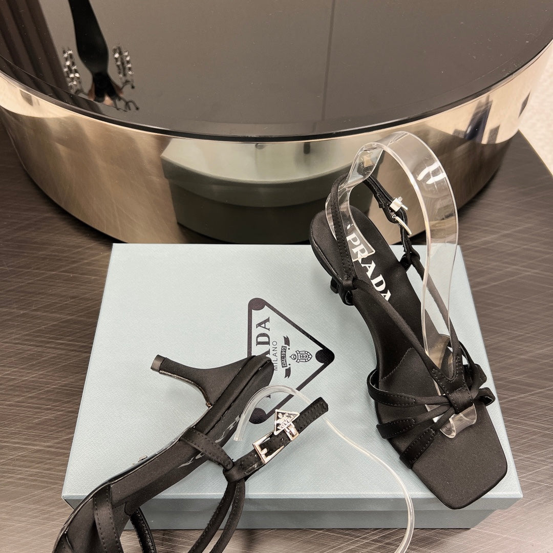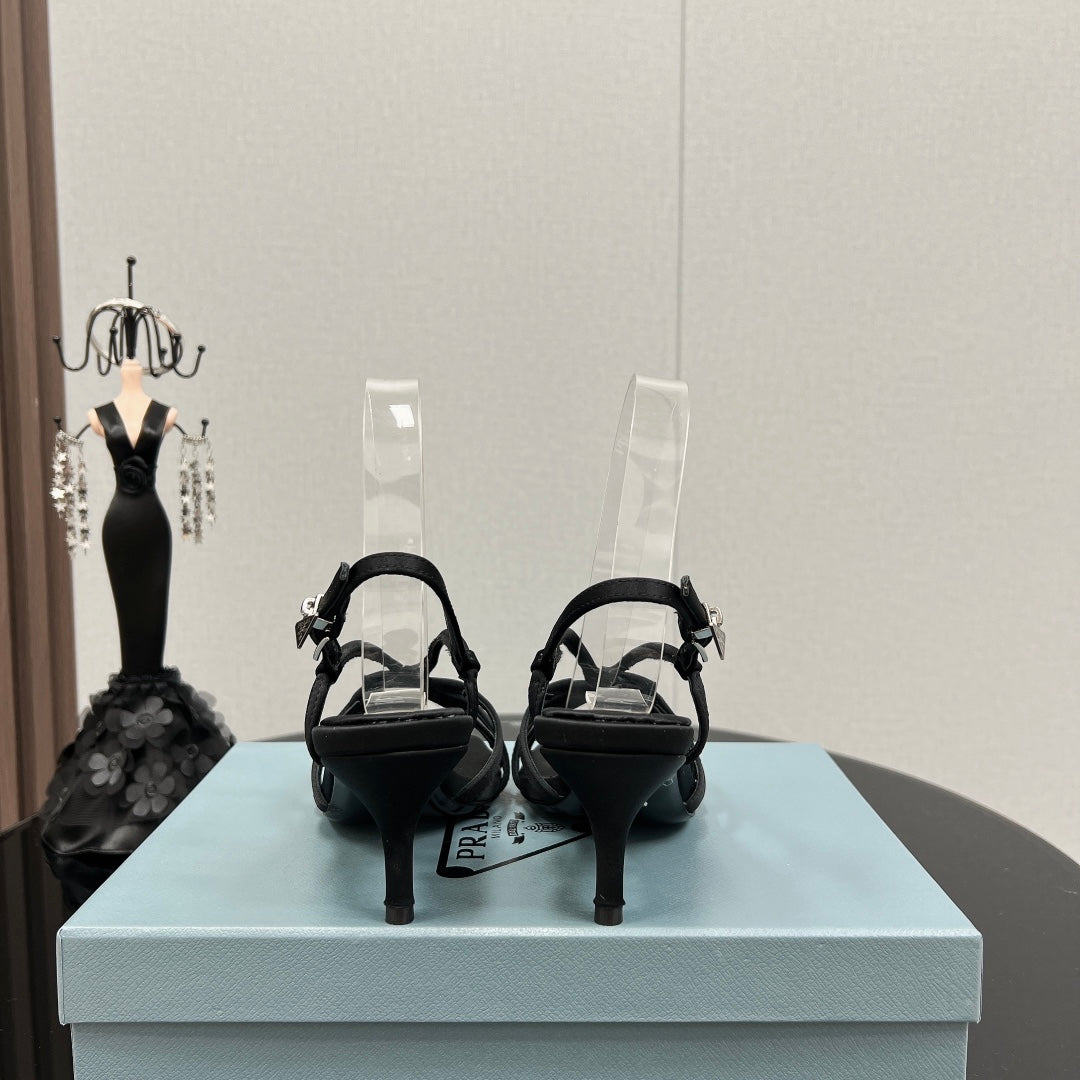 PRA HEELED SANDALS BLACK SATIN