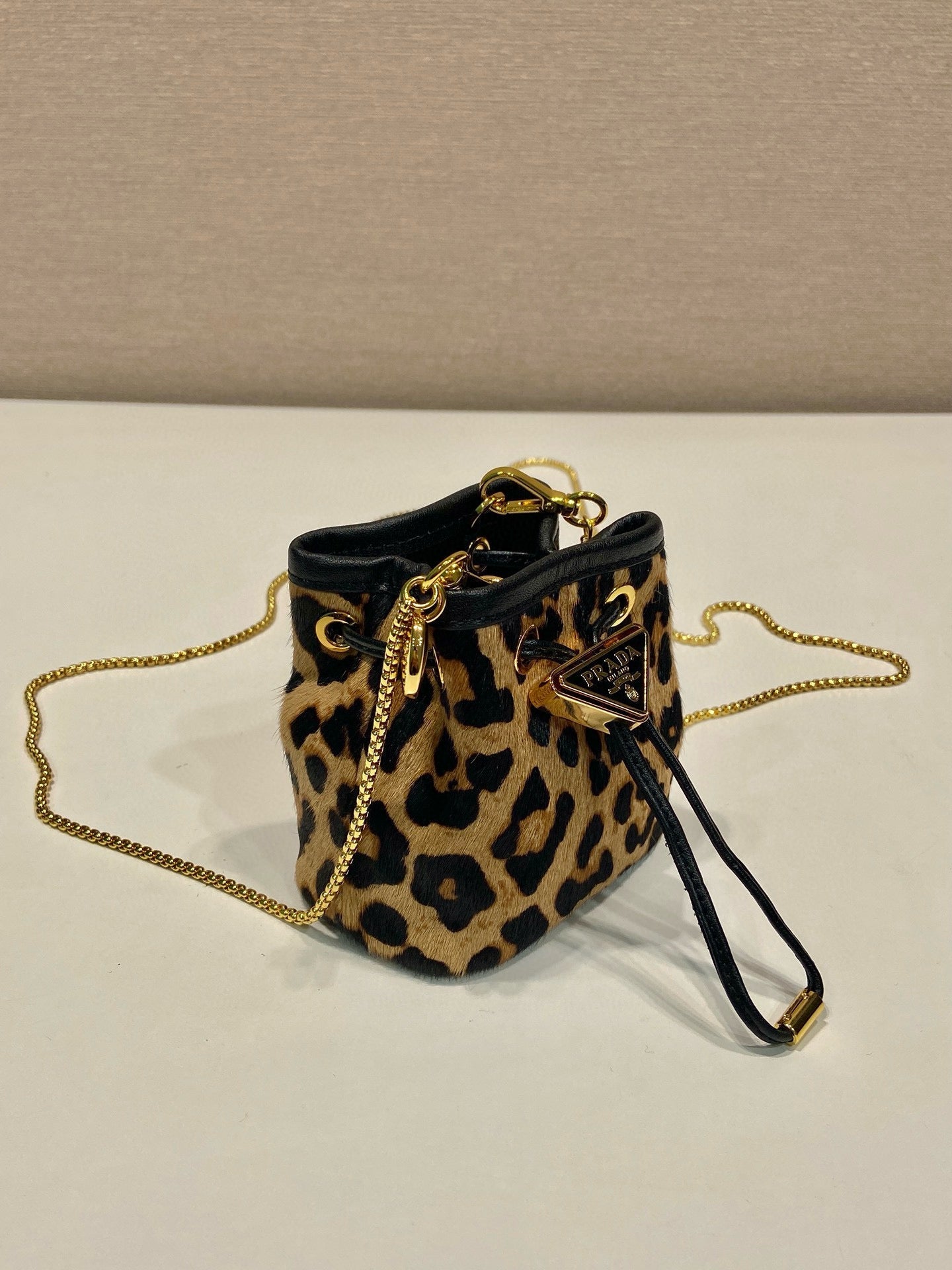 Pra Mini Drawstring Pouch Black Brown Calfskin