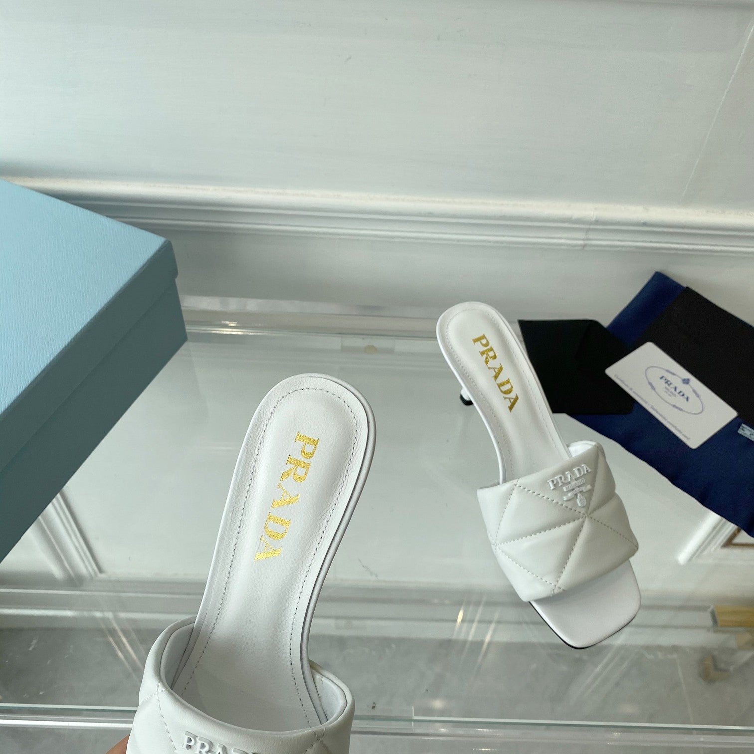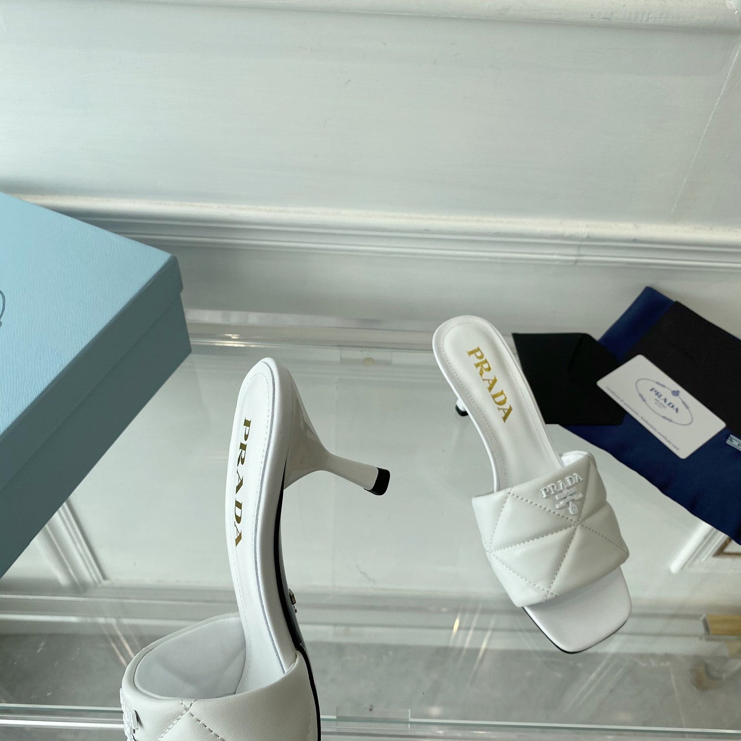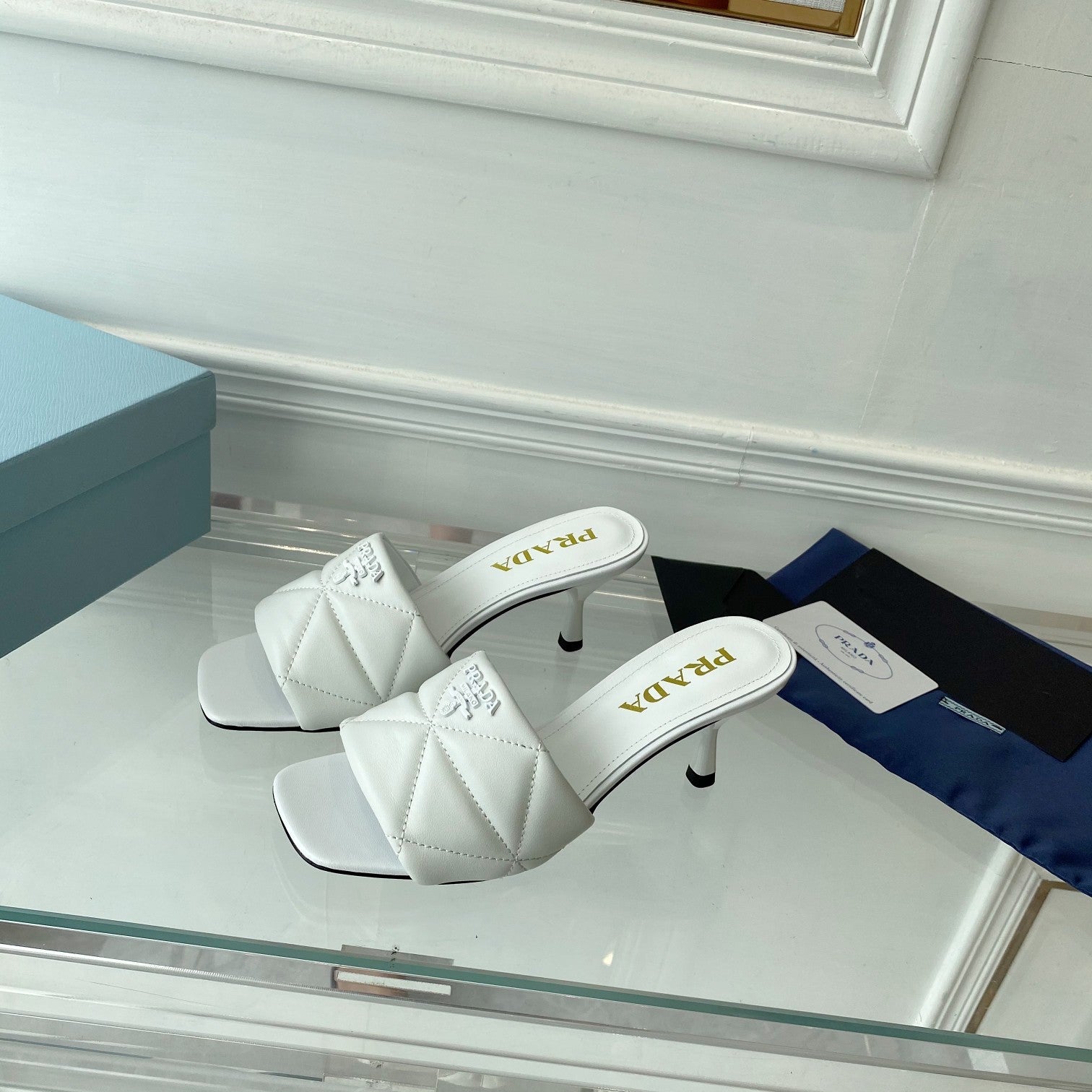 PRA QUILTED HIGH HEELS SANDALS 65 WHITE LAMBSKIN