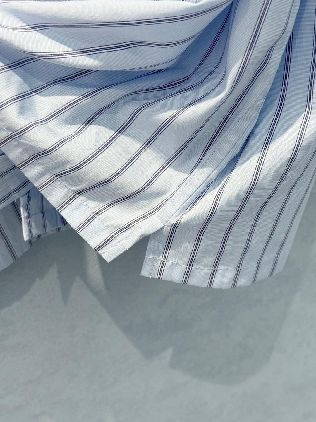 Prada 25 Striped Short-sleeved Collared Shirt Blue Cotton