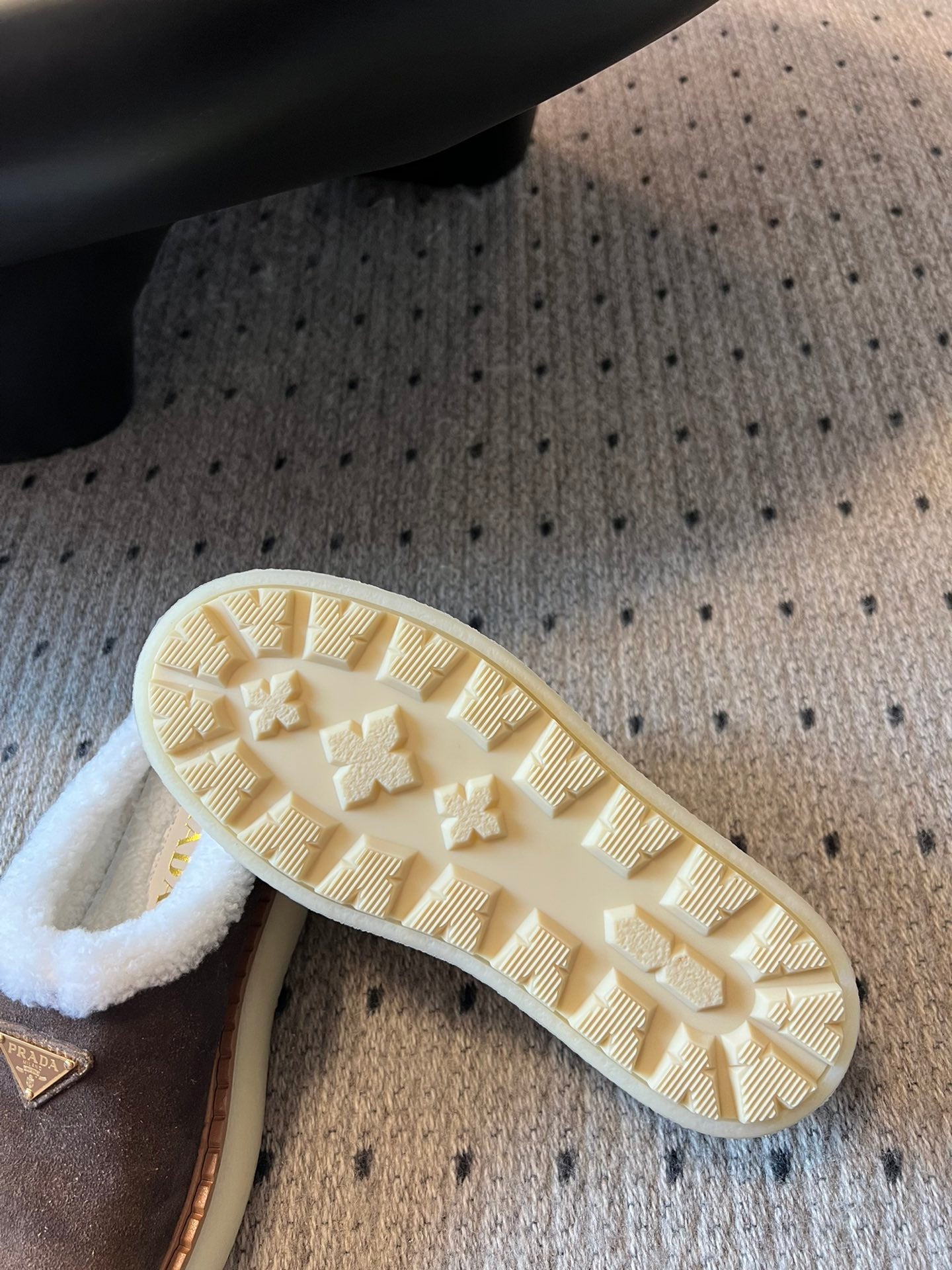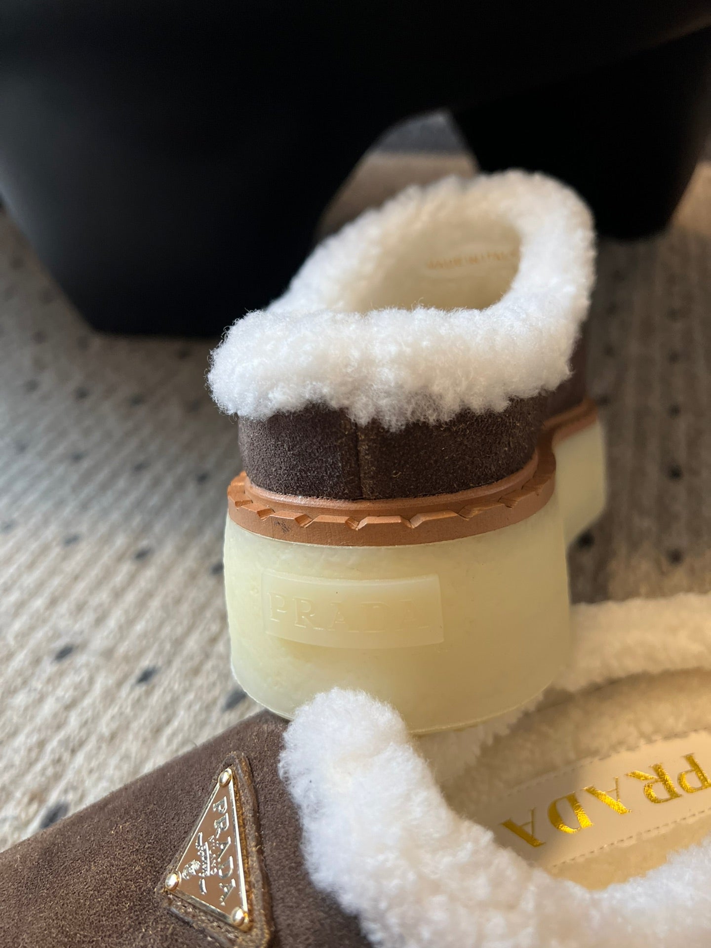 Prada 25s Furry Half-Cover Slippers Brown Suede And Wool 538428