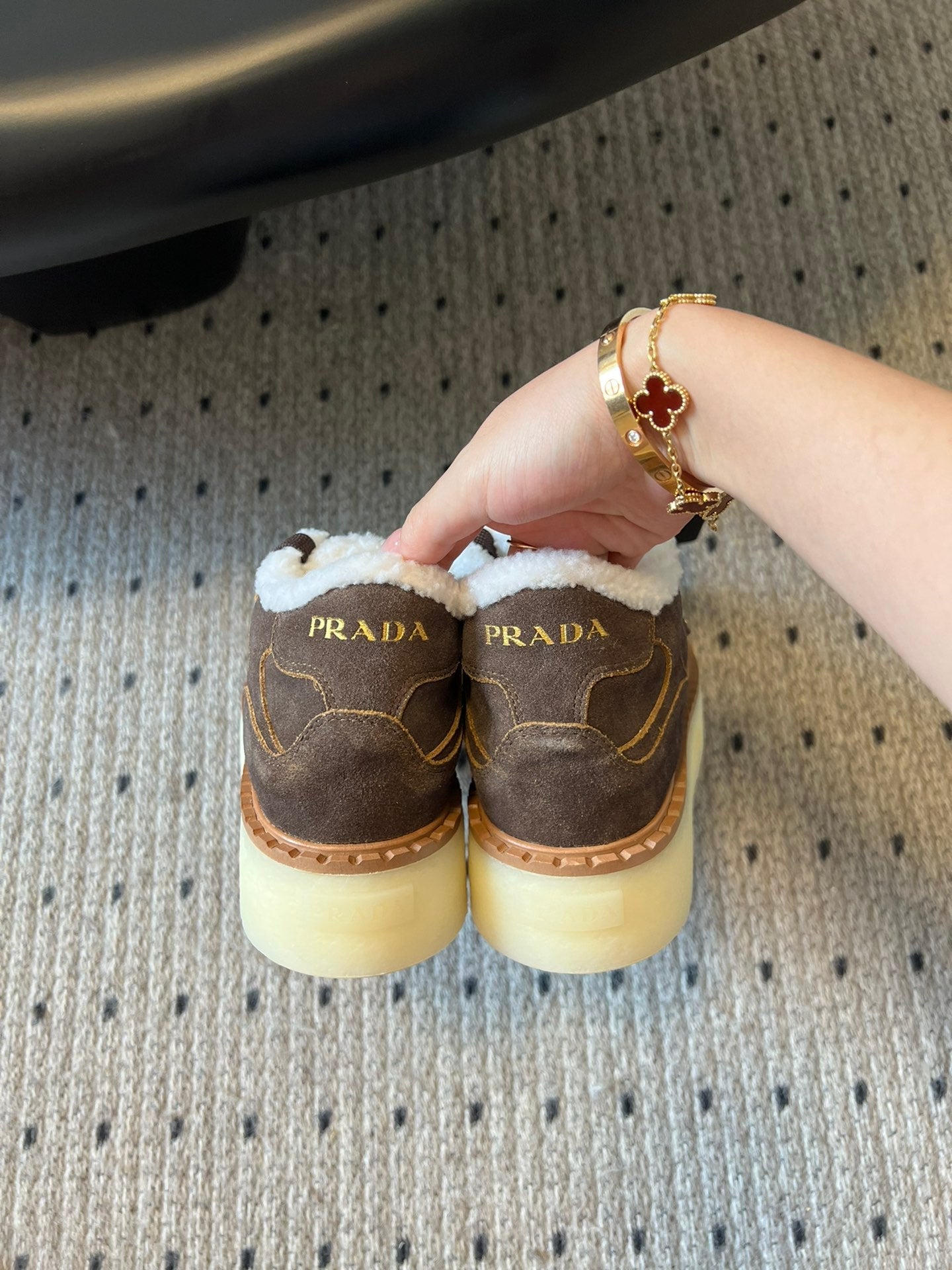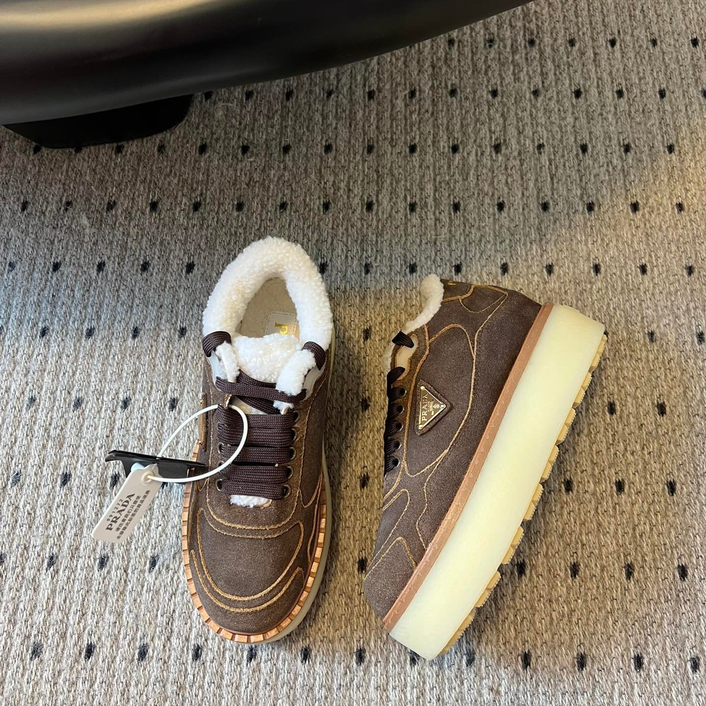 Prada 25s Mid-Top Sneaker Brown Suede And Wool 538432