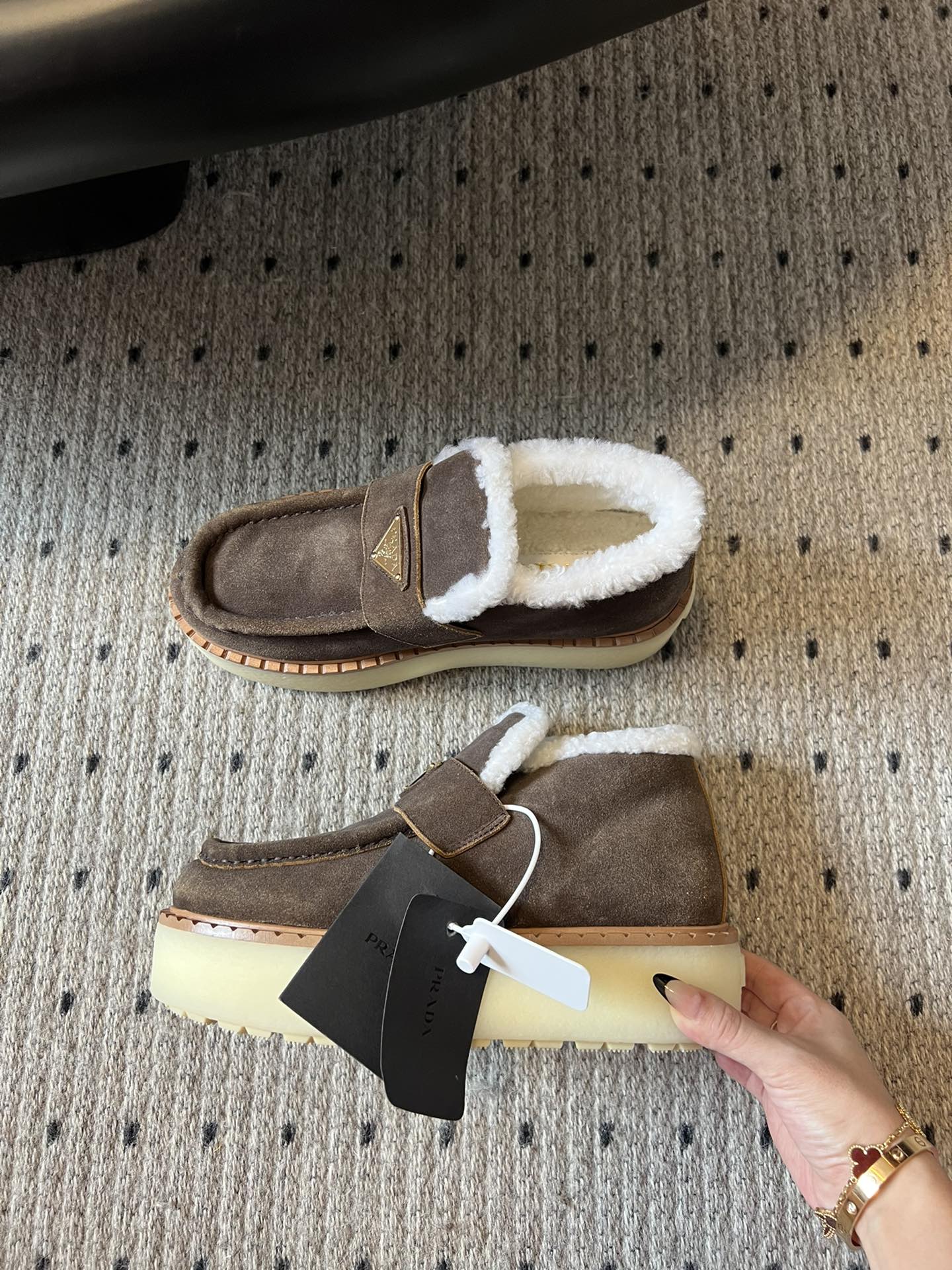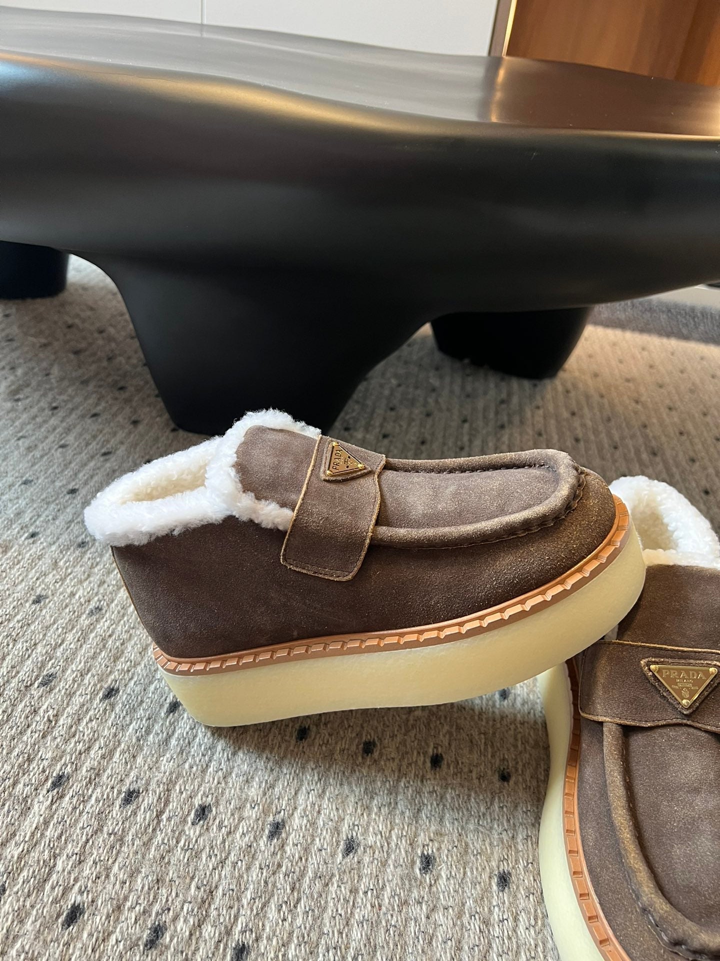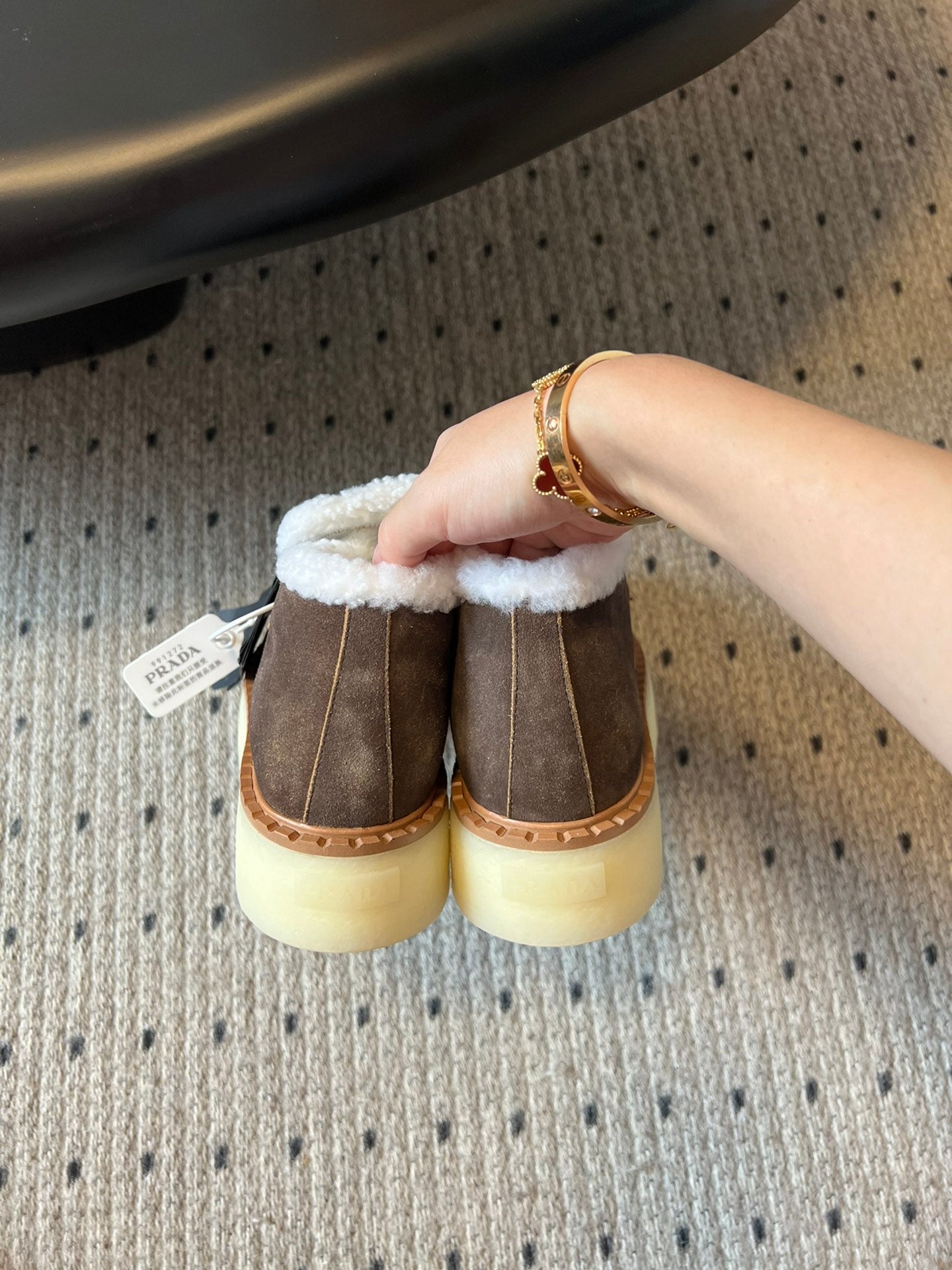 Prada 25s platform ankle boots brown suede and wool 538439