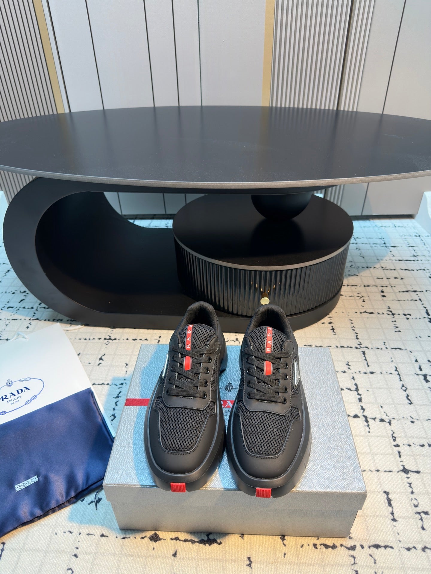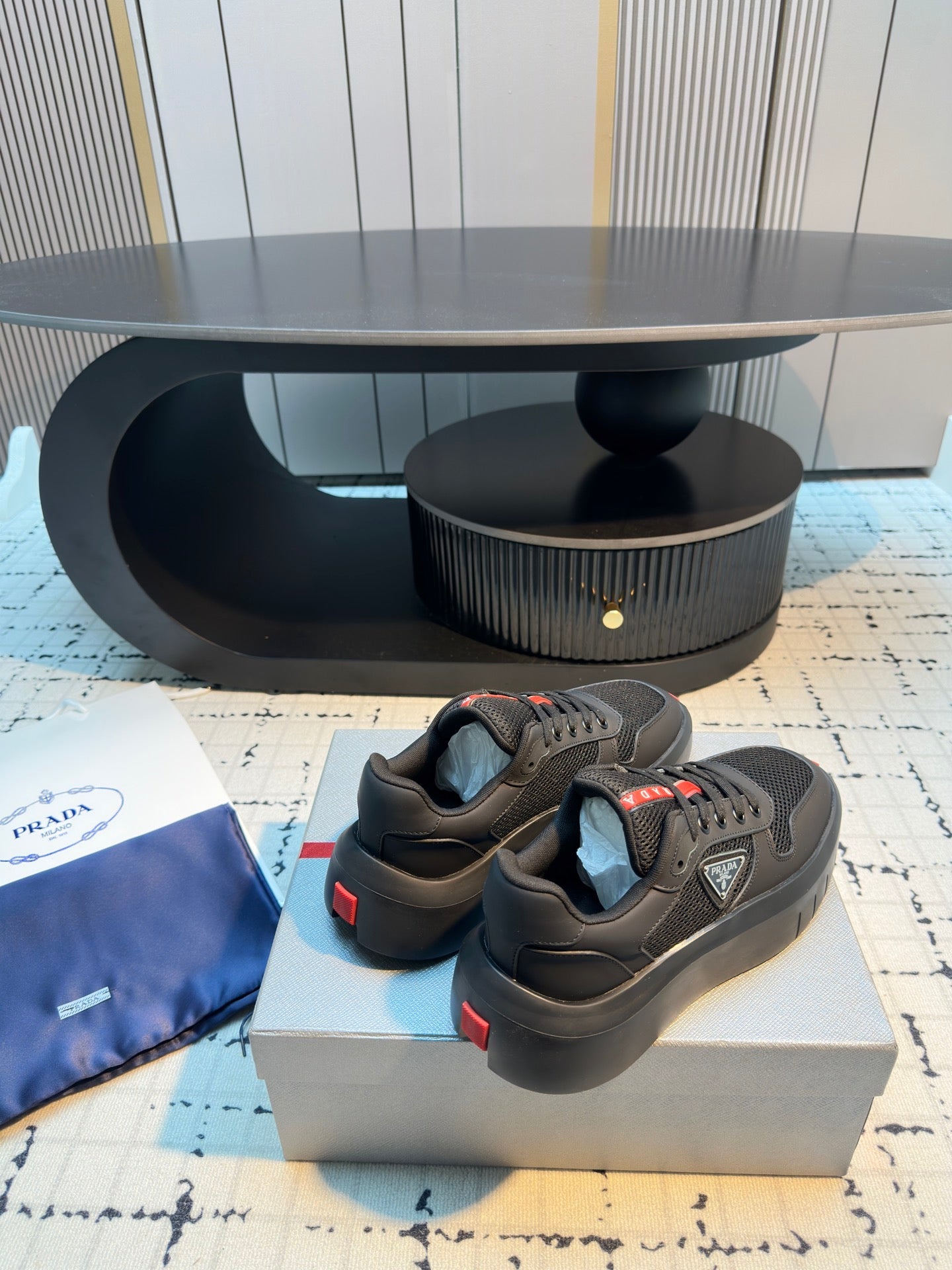 Prada 25s Platform Sneakers Black Cowhide 538424