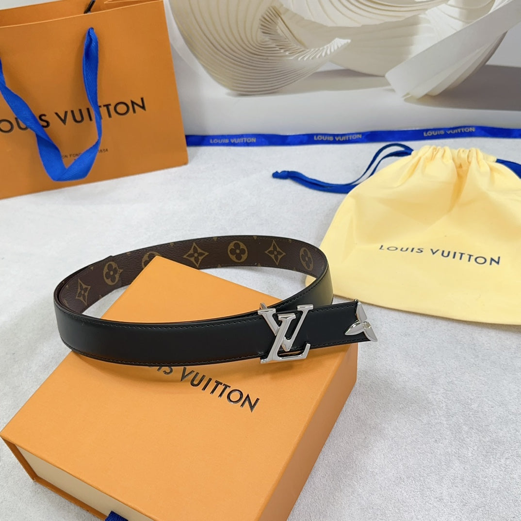Pretty LV 30mm Reversible Belt Black Calfskin Silver Buckle