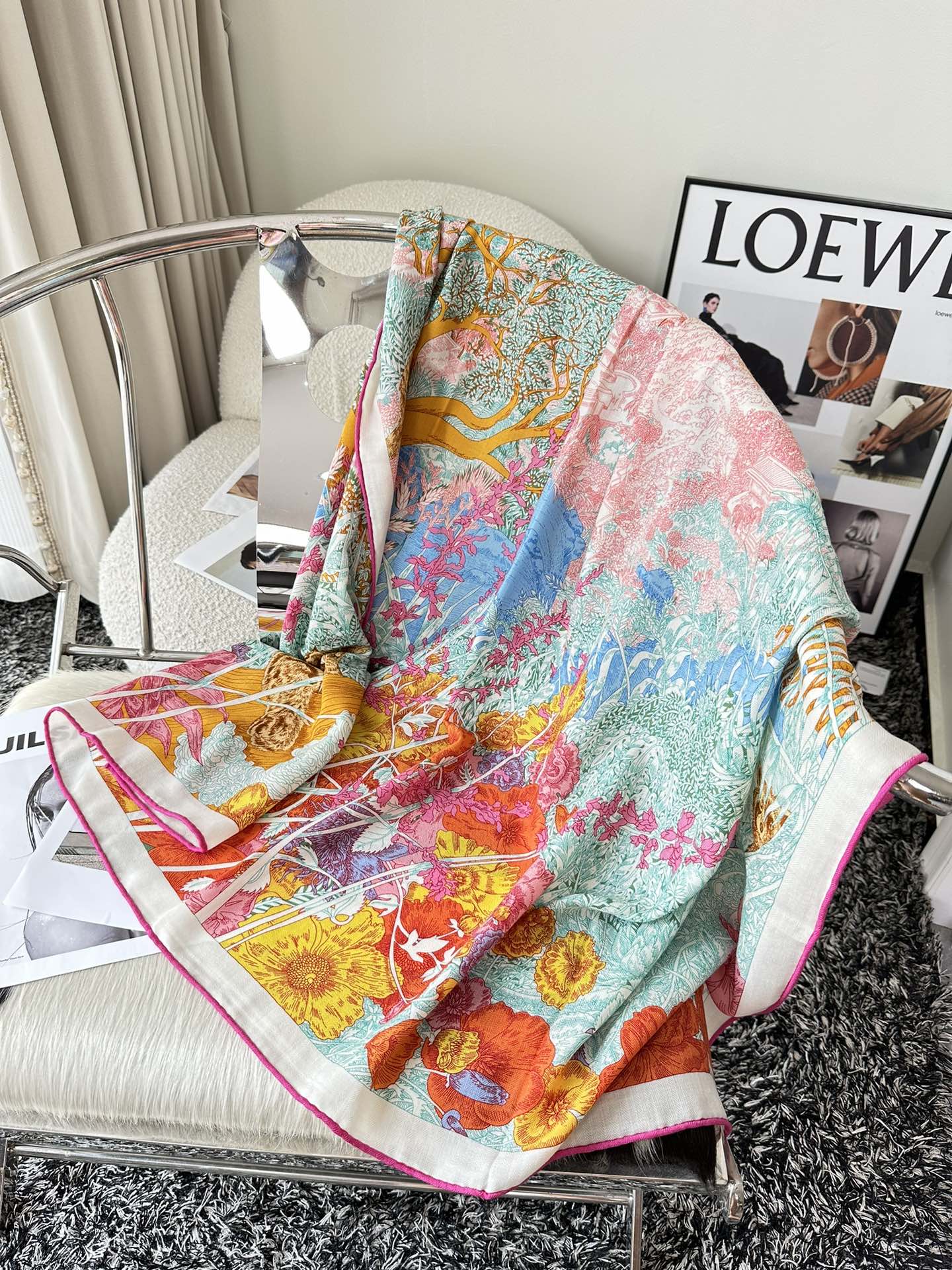 Retourala Nature Hermes Scarf 140 CM Turquoise Colorful Silk
