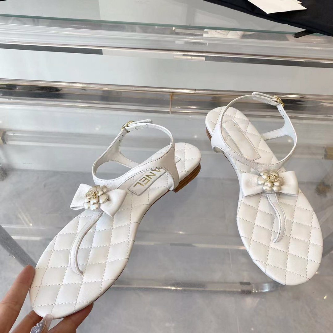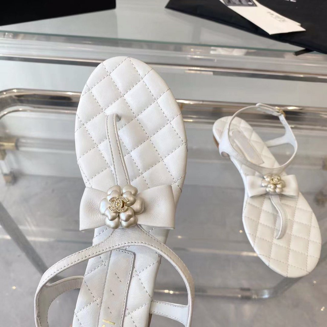 sandal white quilted lambskin flower cc