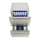 - Adaptable stainless steel dividers in each drawer allow customization of drawer space