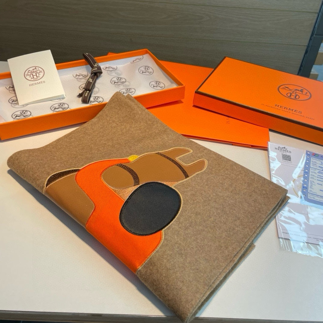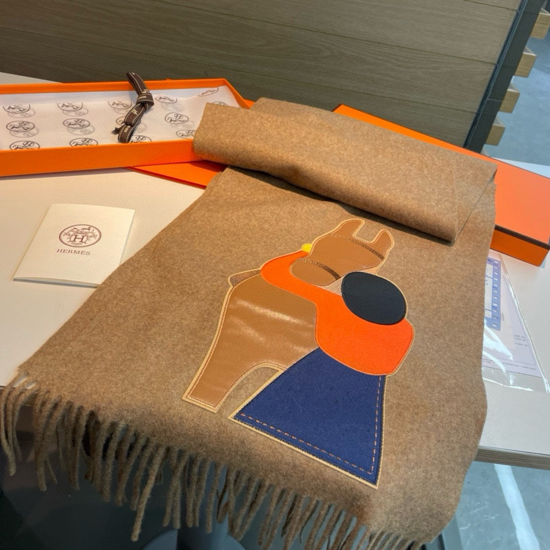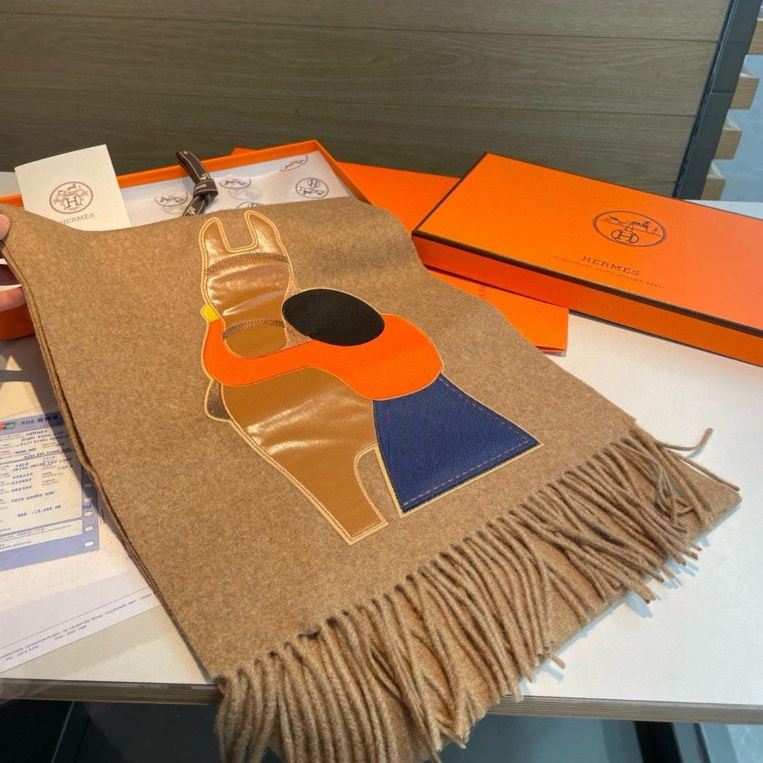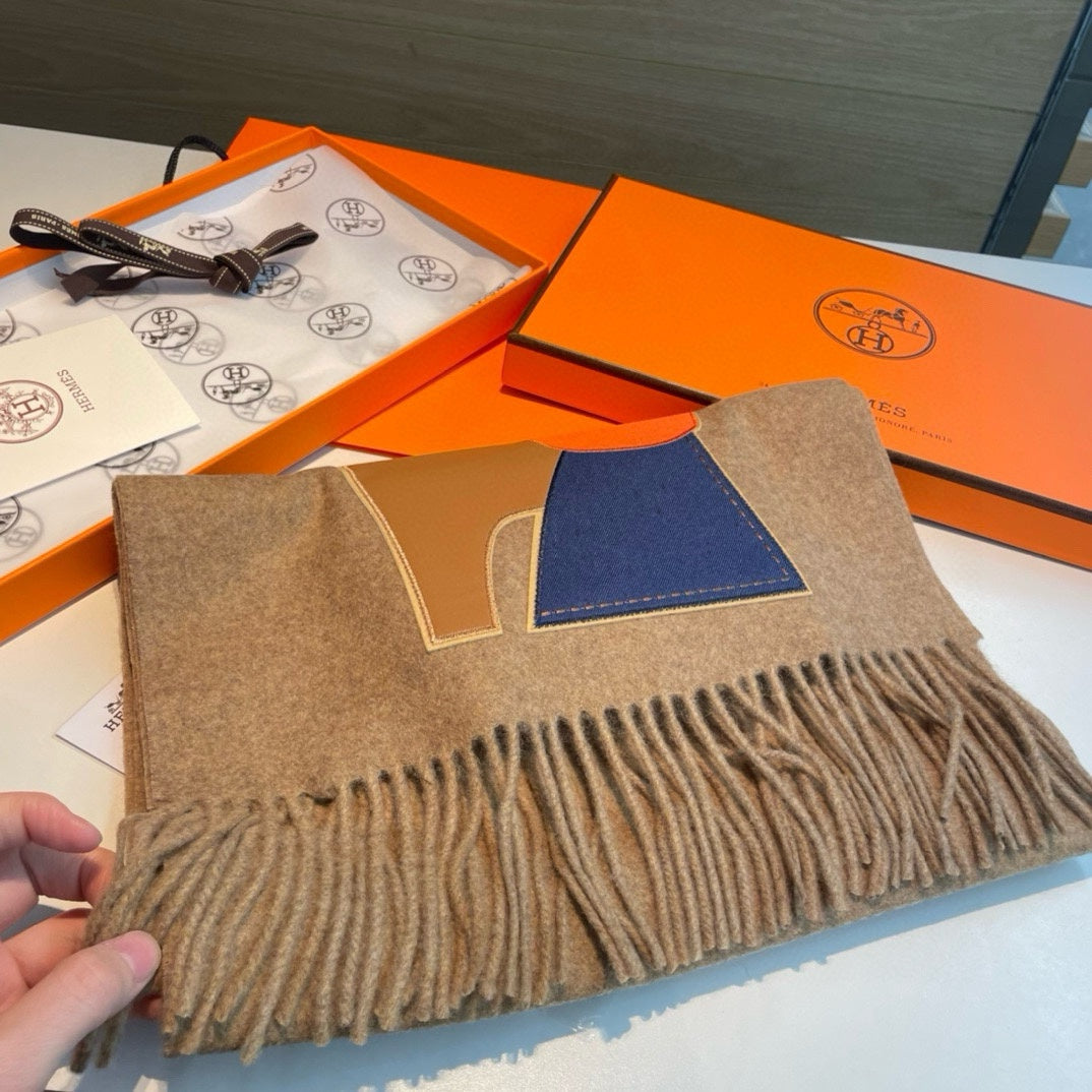 Scarf 200 CM Brown Cashmere And Leather 394476