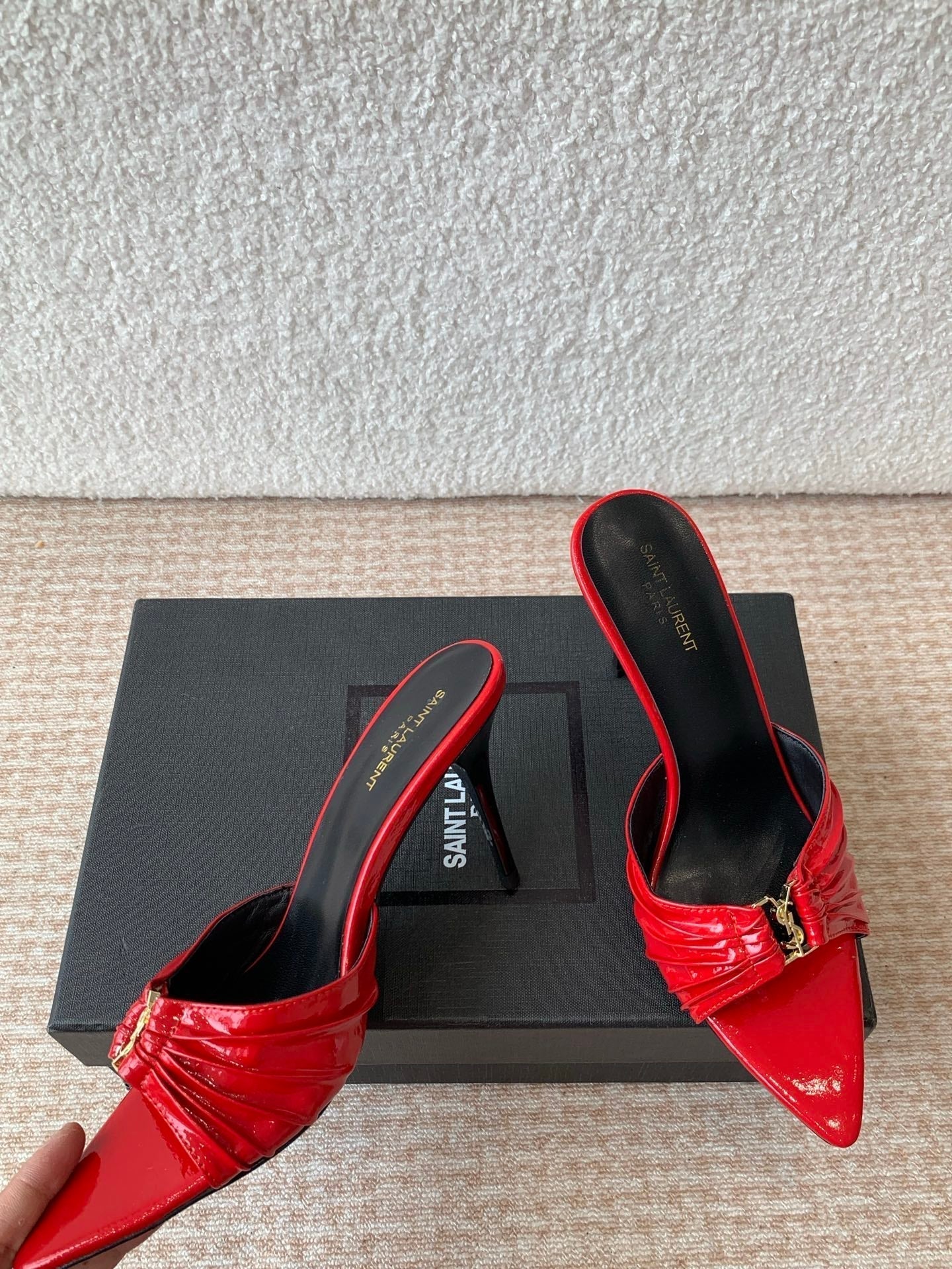 - Material: Patent Calfskin