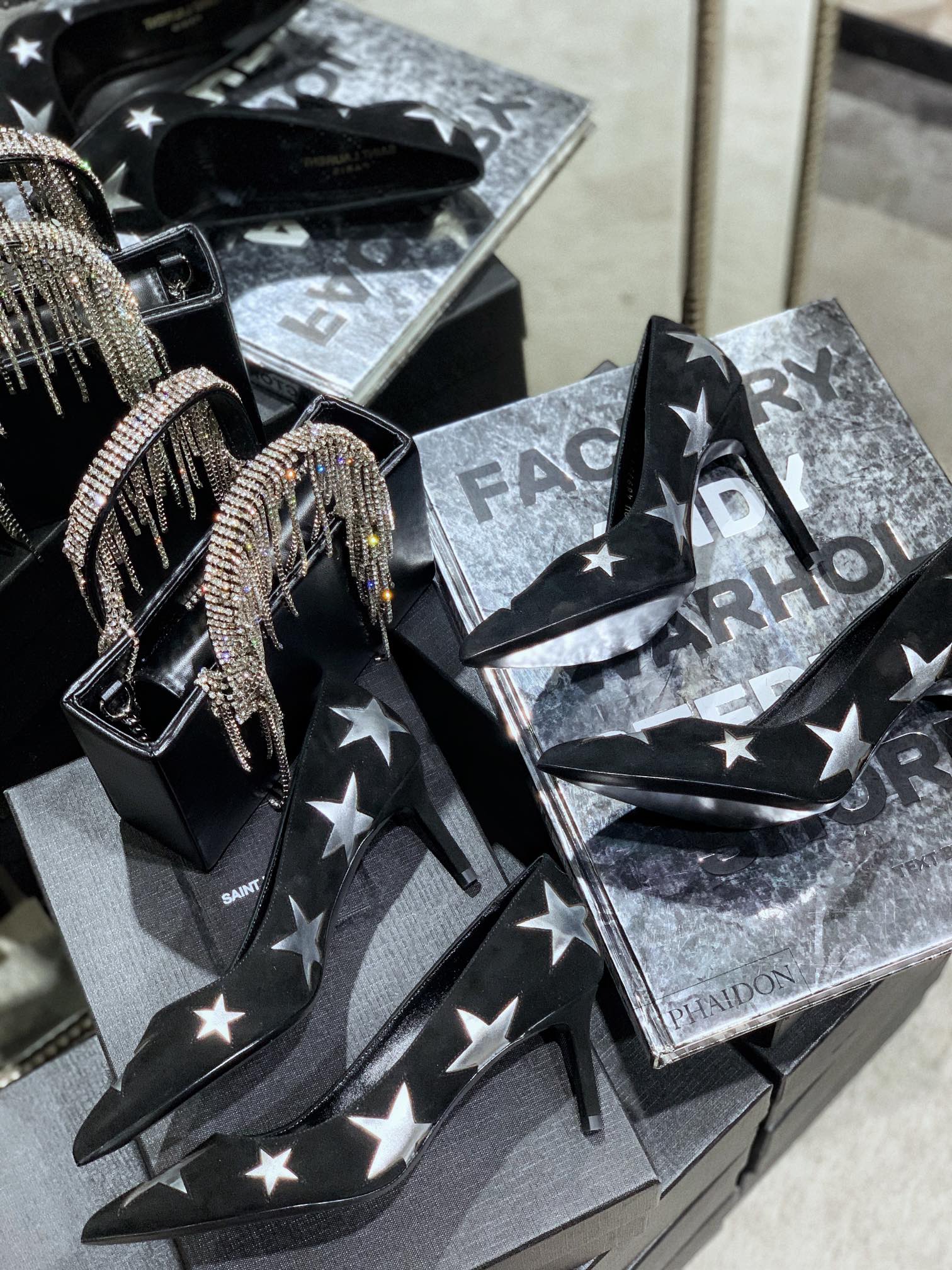 SL CHARLOTTE SILVER STAR PUMPS BLACK SUEDE