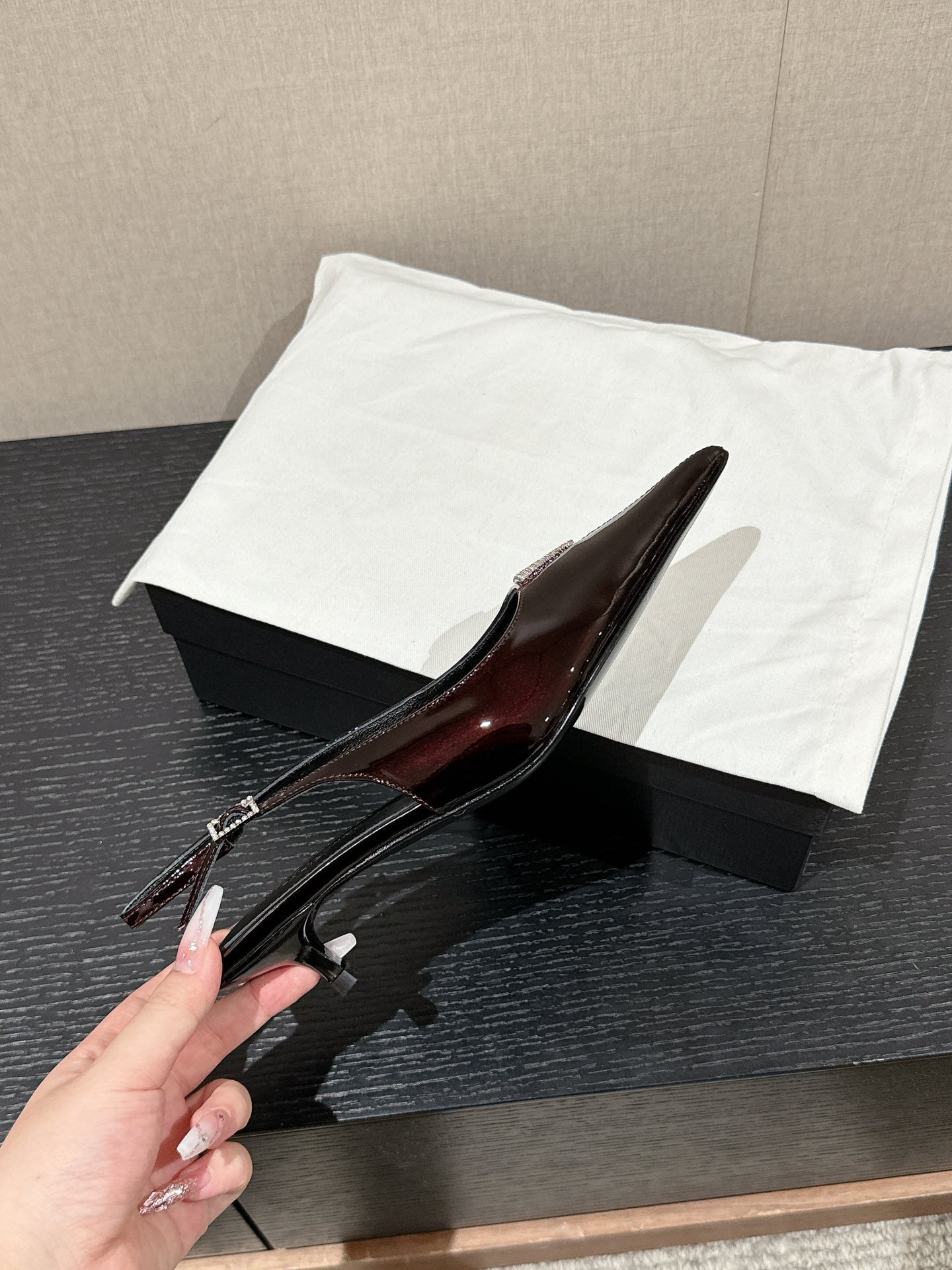 SL CHERISH CRYSTAL SLINGBACK WINE CALFSKIN