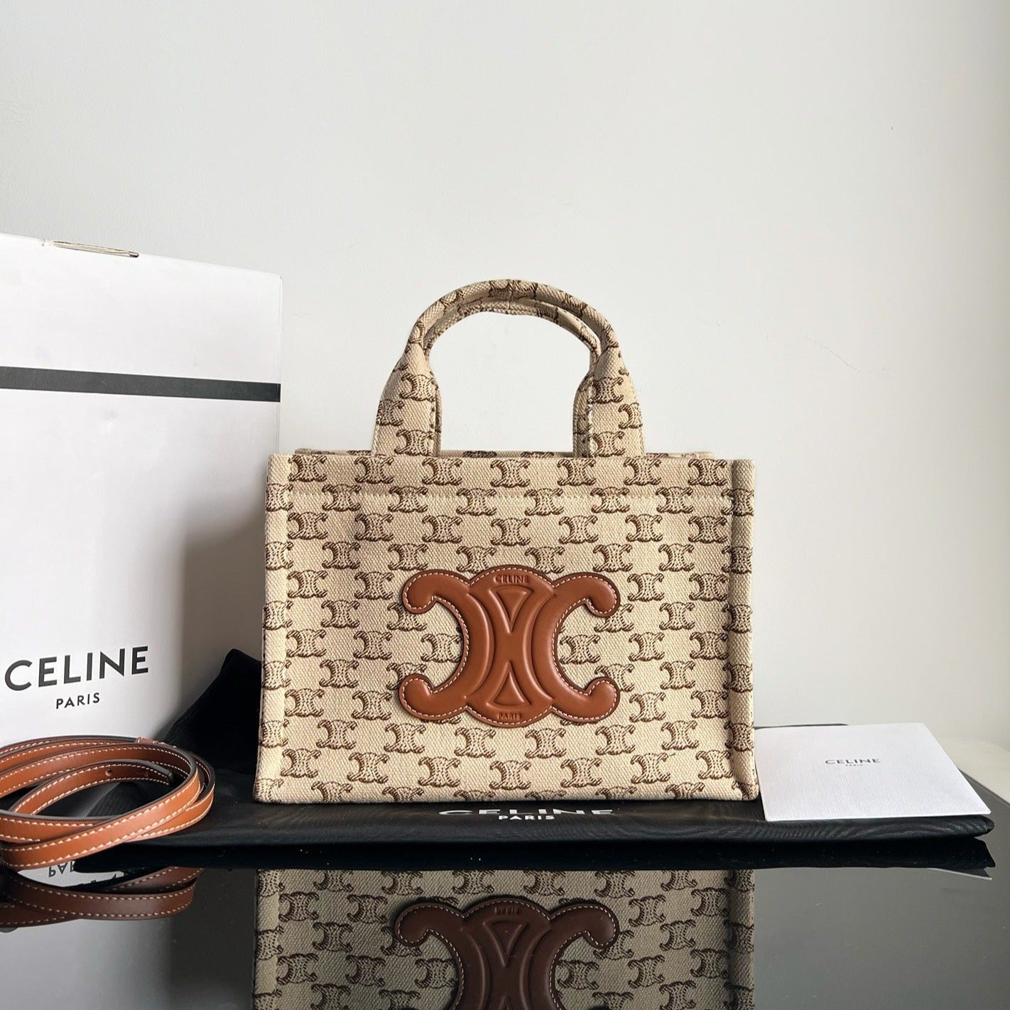 SMALL CABAS THAIS 25.5 BEIGE CANVAS TRIOMPHE CALFSKIN