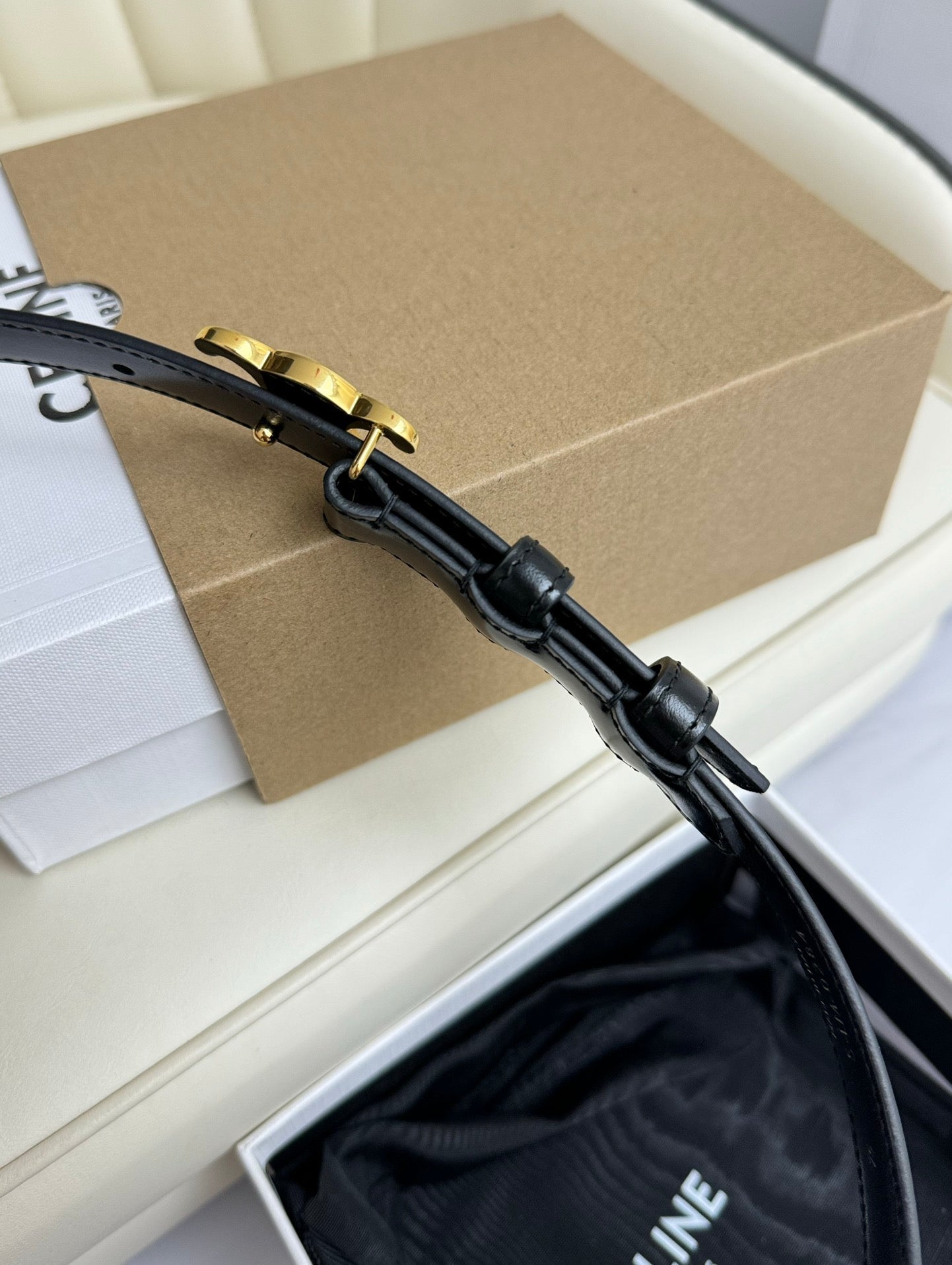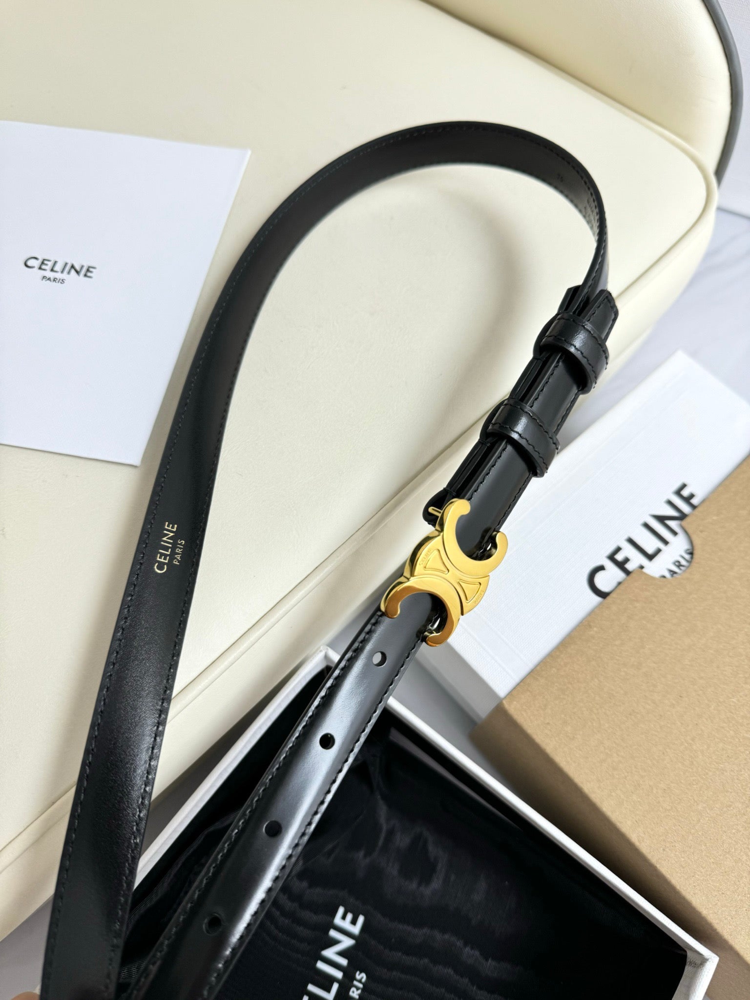 SMALL TRIOMPHE BELT 18 MM BLACK LEATHER GOLD HARDWARE
