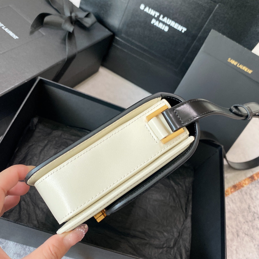 SOLFERINO MEDIUM SATCHEL 23 IN BLACK MIX WHITE CALFSKIN GOLD LOGO